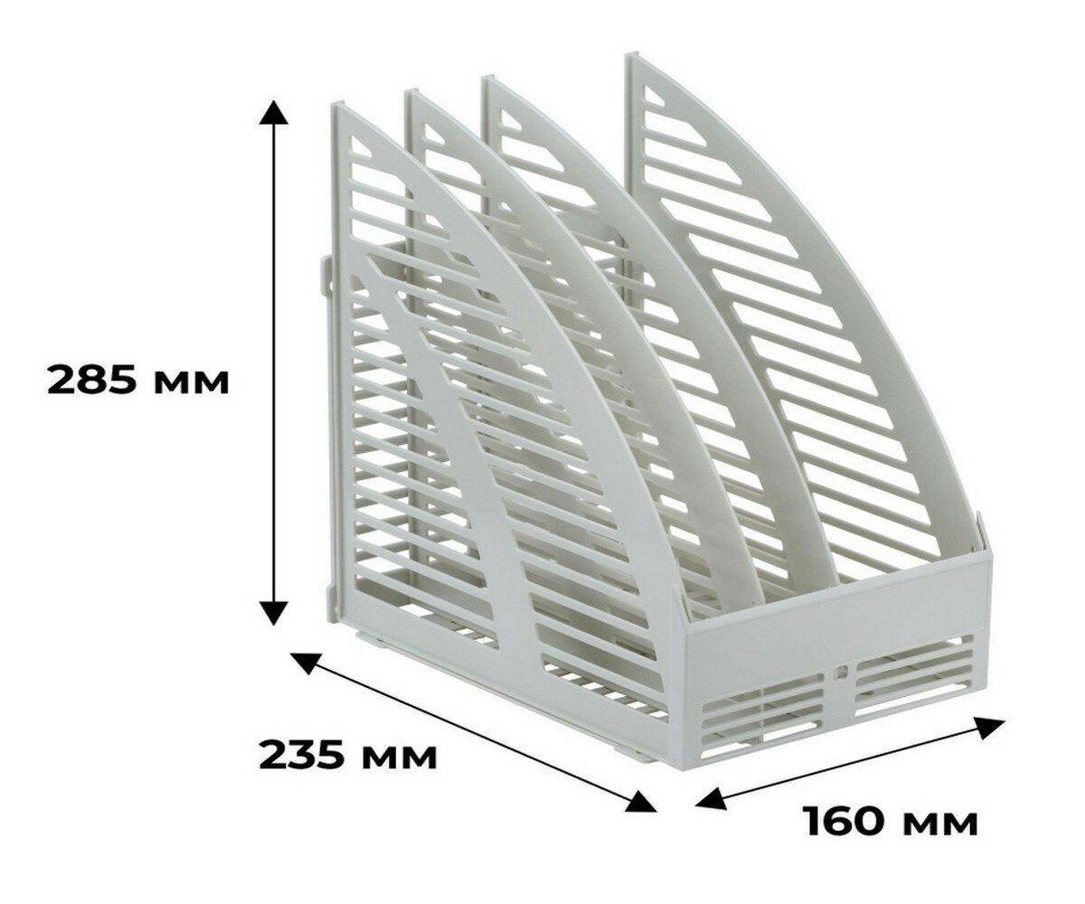 Лоток вертикальный для бумаг BRAUBERG "SMART-MAXI" (254х255х297 мм), 3 отделения, сетчатый, сборный, серый, 231524