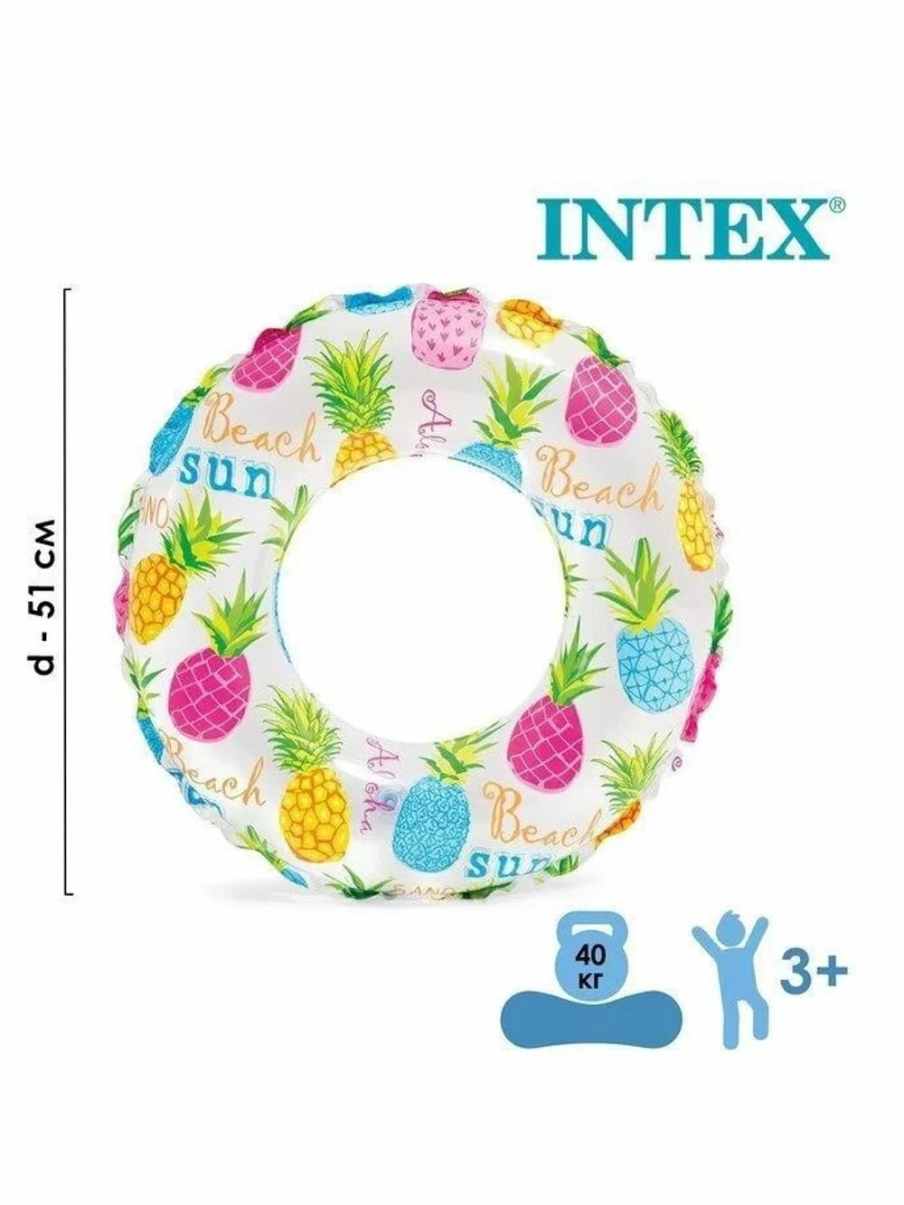 Круг надувной детский для плавания "Яркий ананас" 51см, 3-6 лет, Intex 59230 интересное: