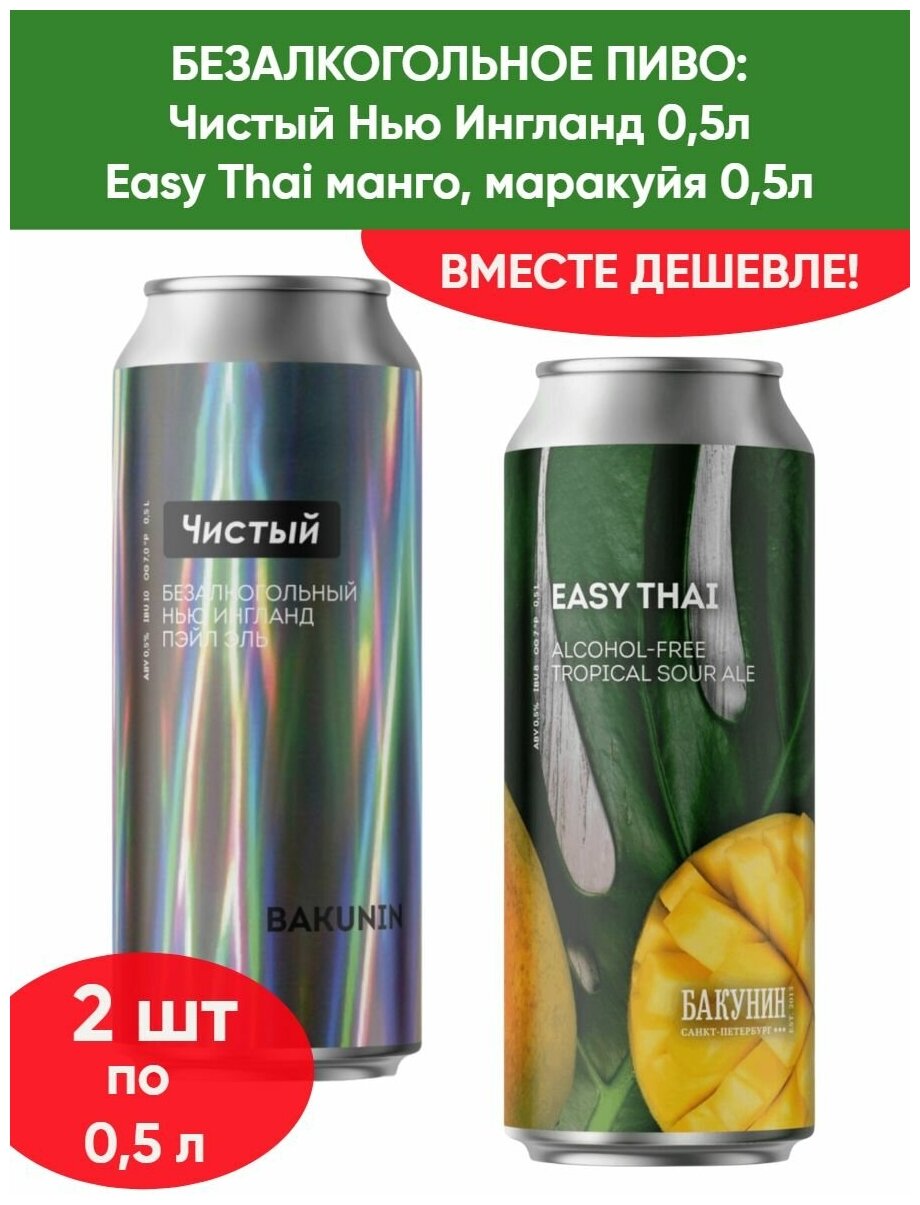 Безалкогольный тропический кислый эль Бакунин Easy Thai 0.5л, Пивной напиток Чистый 0.5л интересное: