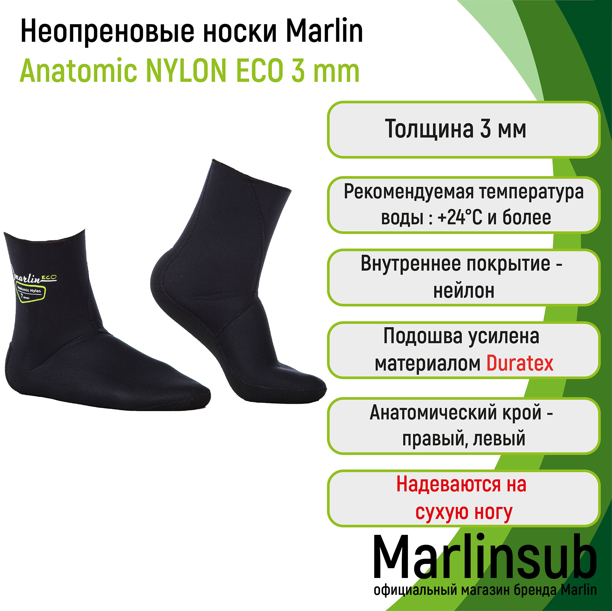 Купить Носки из неопрена 3 мм Marlin ANATOMIC NYLON ECO 3 мм 46/47