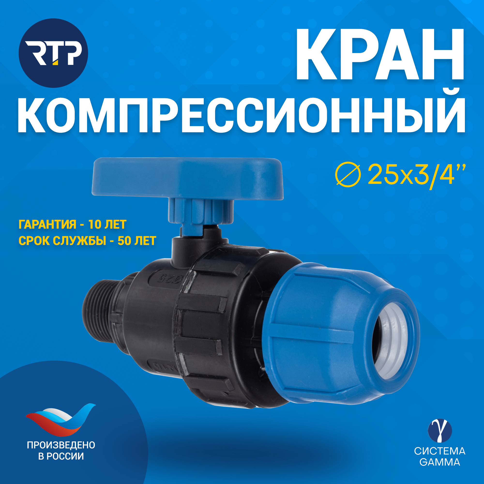Кран ПНД РосТурПласт d25х3/4" наружная резьба, 16 бар