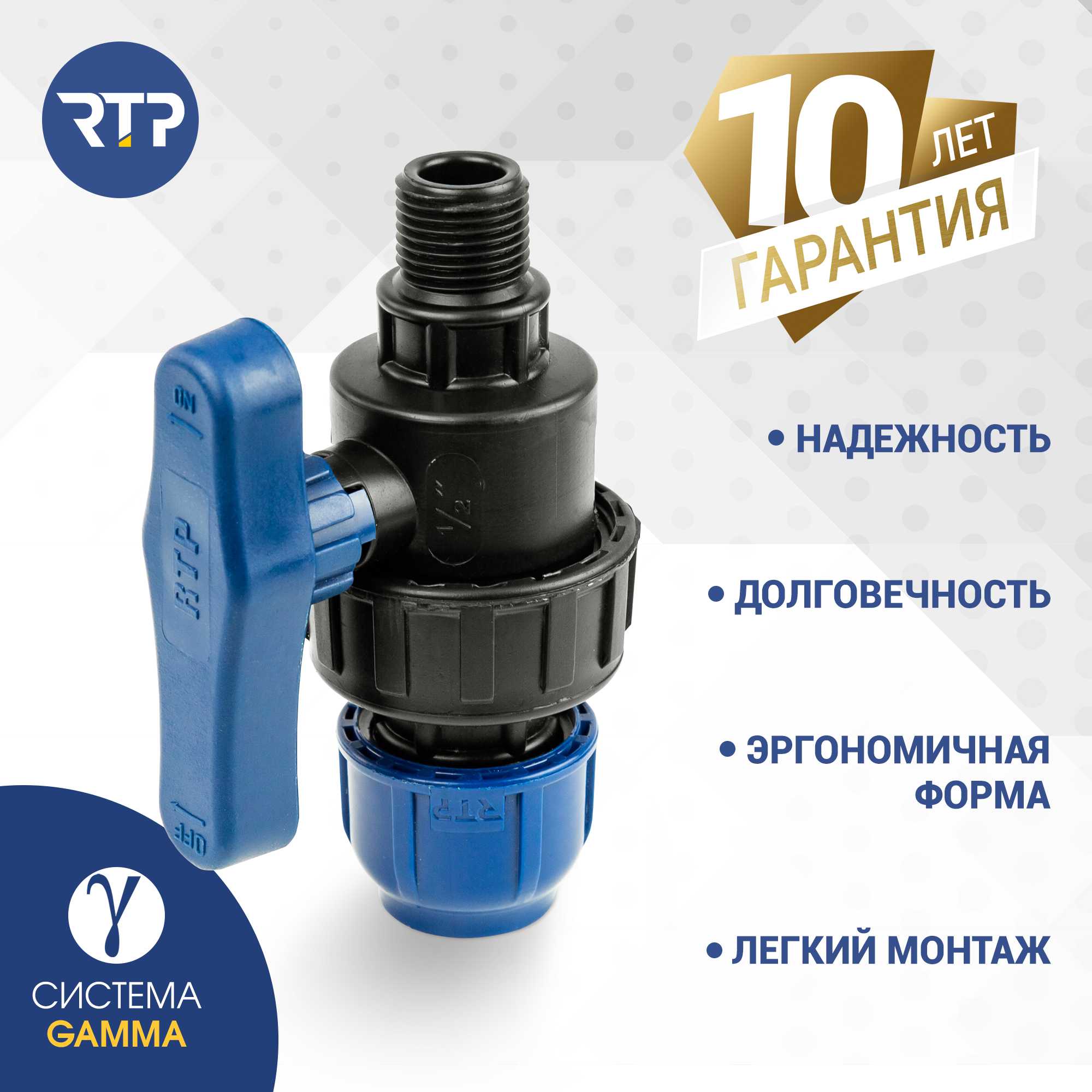 Шаровой кран ПНД PN16 RTP - Цанга D20 мм/Наружная трубная резьба 1/2" компрессионный запорный фитинг для труб ПНД