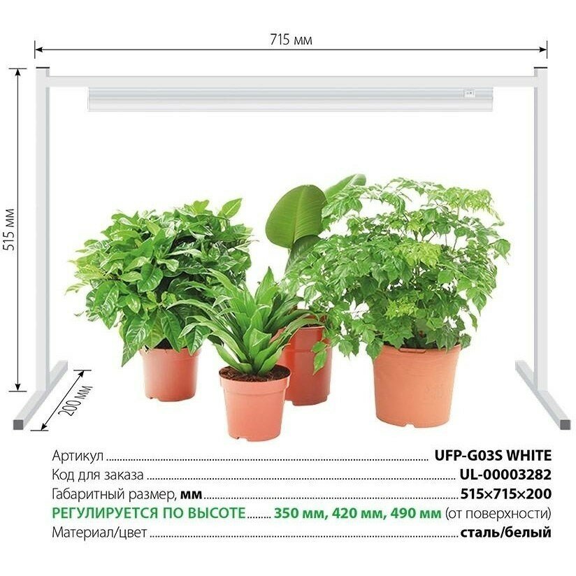 Uniel подставка для свет-ка для растений (фито) h=350-420-490мм, L=715мм металл/белый UFP-G03S WHITE