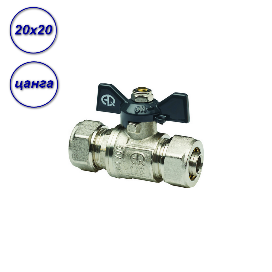 Кран шаровой AQUALINK для металлопластиковых труб, цанга-цанга, 16*16, бабочка