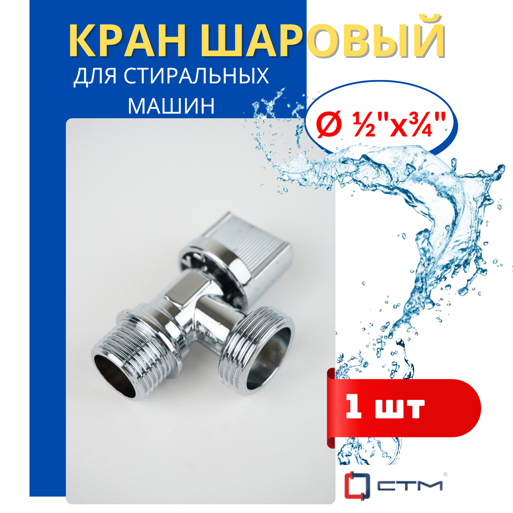 Купить Кран шаровый латунный угловой 1/2х3/4 для стиральных машин (СТМ) 1шт.