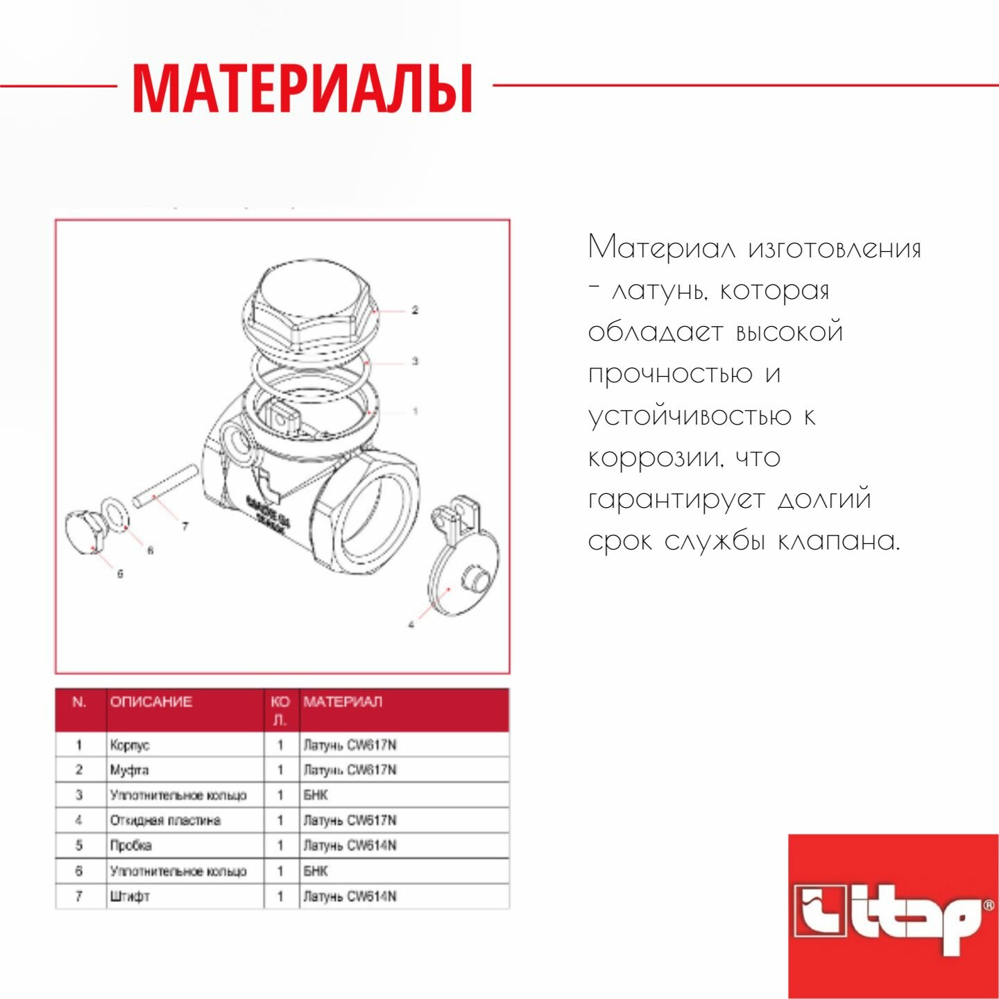 Клапан обратный лепестковый горизонтальный 3/4" вн Itap 130