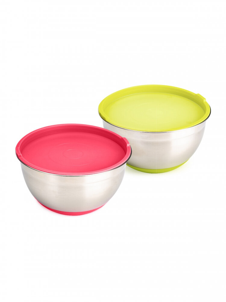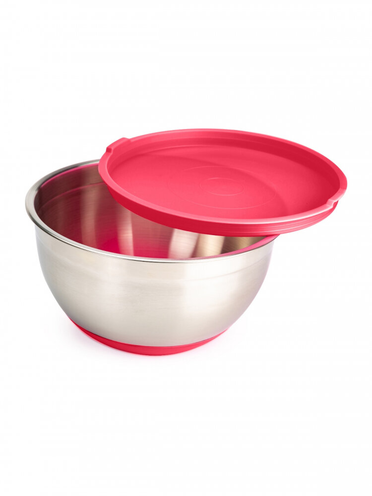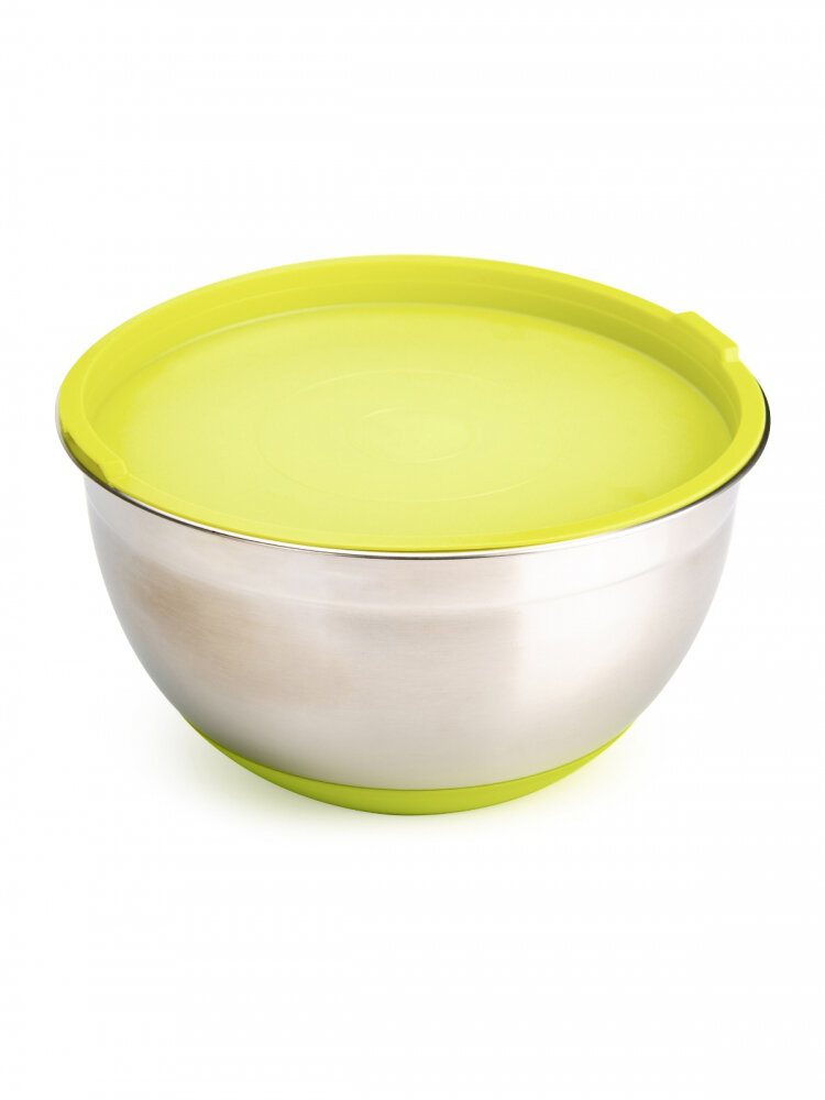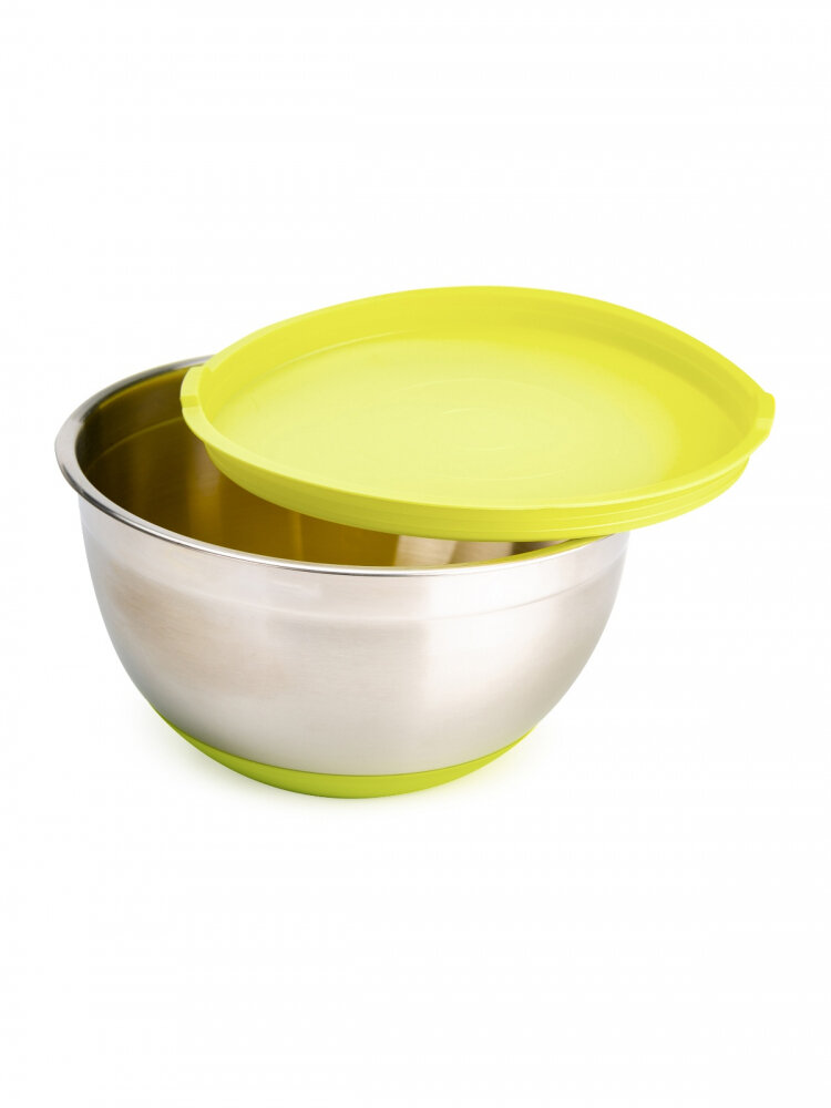 | Плюсы: | Лёгкая, вместительная. Пластиковое основание, уменьшающее скольжение по столу, при смешивании в миске теста. Оно же снижает шум. Крышка тоже весьма кстати. |