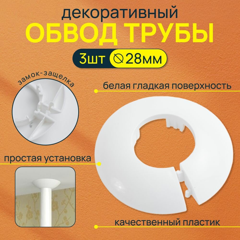 Купить Обвод декоративный для трубы на натяжной потолок, диаметр 28 мм, 3 шт
