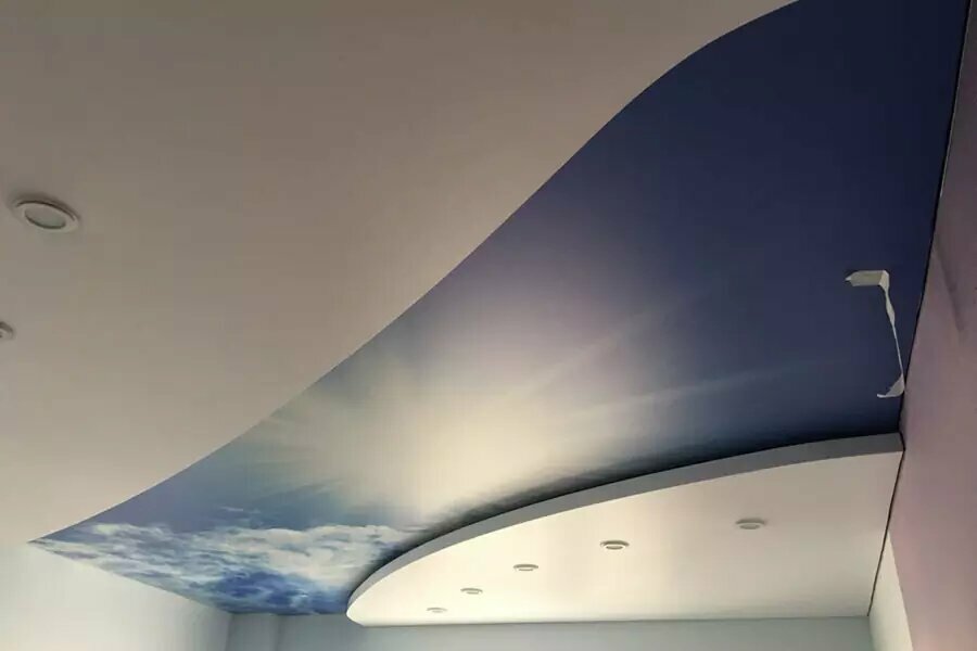 Двухуровневые натяжные потолки в гостиной интересное: