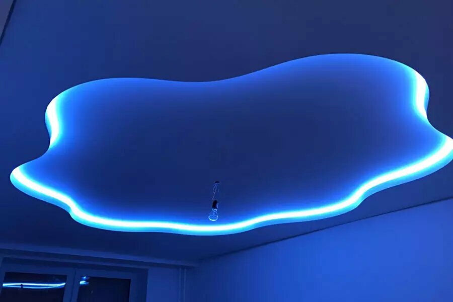 Натяжные потолки с контурной подсветкой интересное: