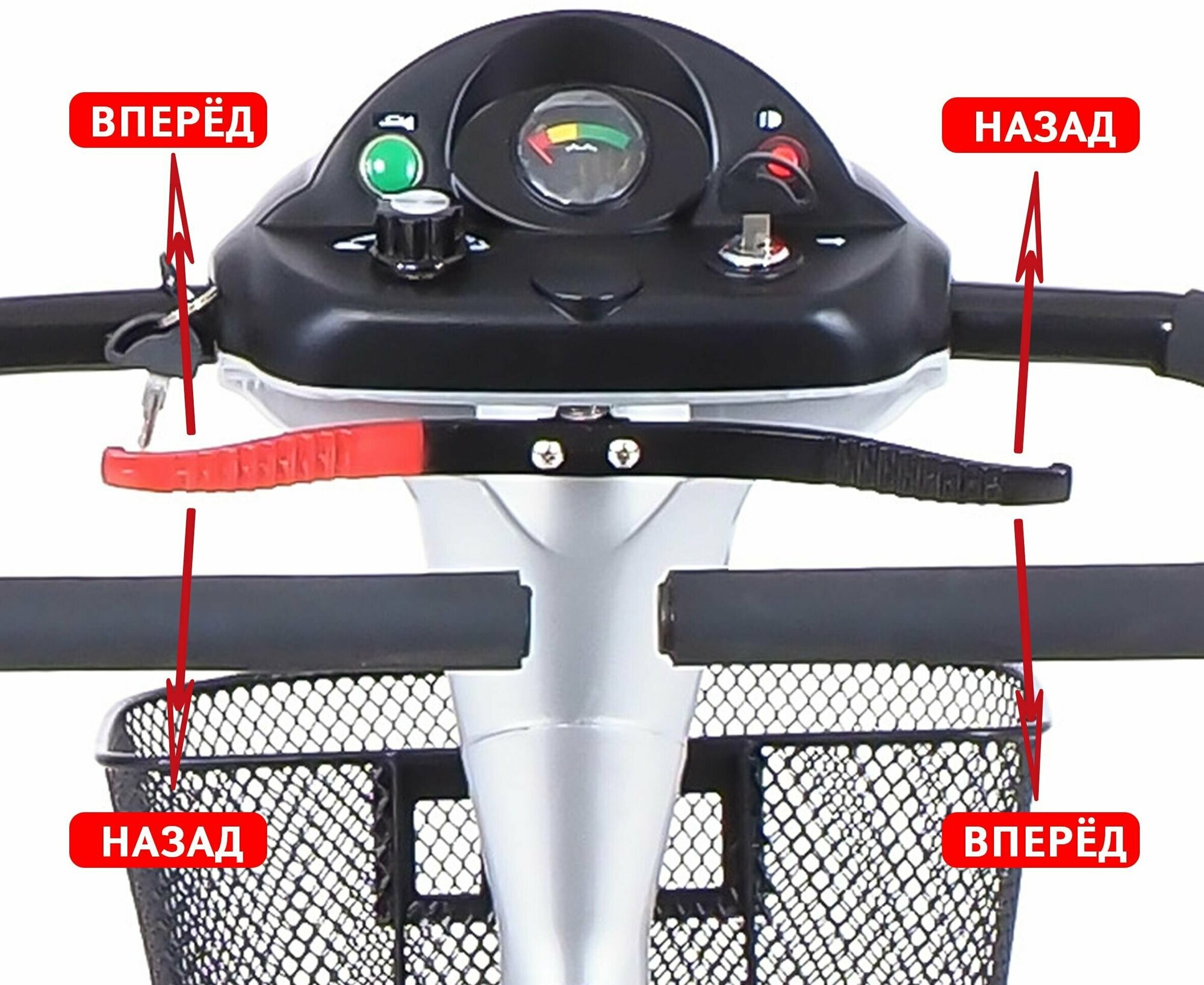 | Особенности | возможность движения задним ходом / индикатор уровня заряда батареи / корзина для вещей / откидные подлокотники / передняя фара |