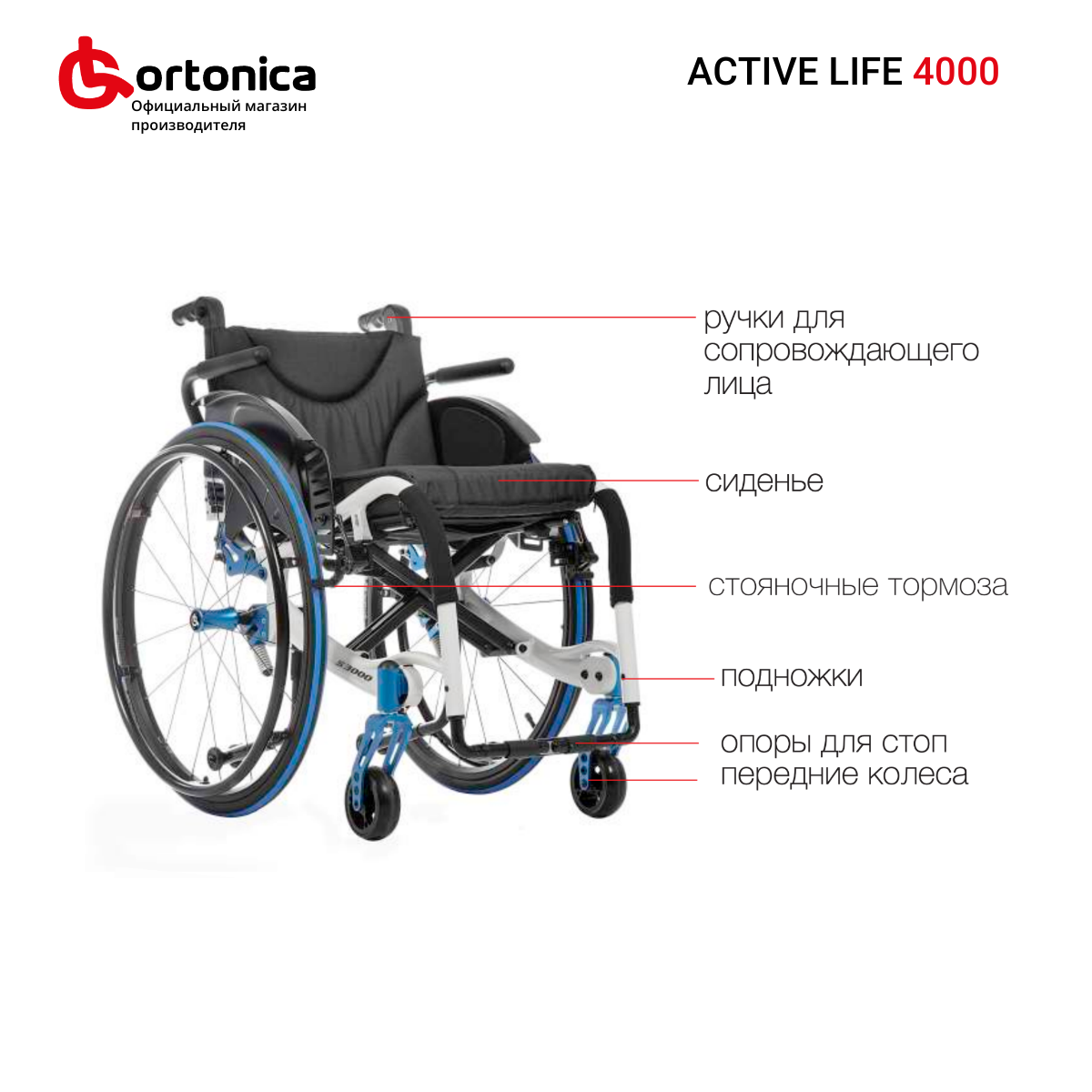 Кресло-коляска для инвалидов Ortonica Active Life 7000, ширина сиденья 43 см