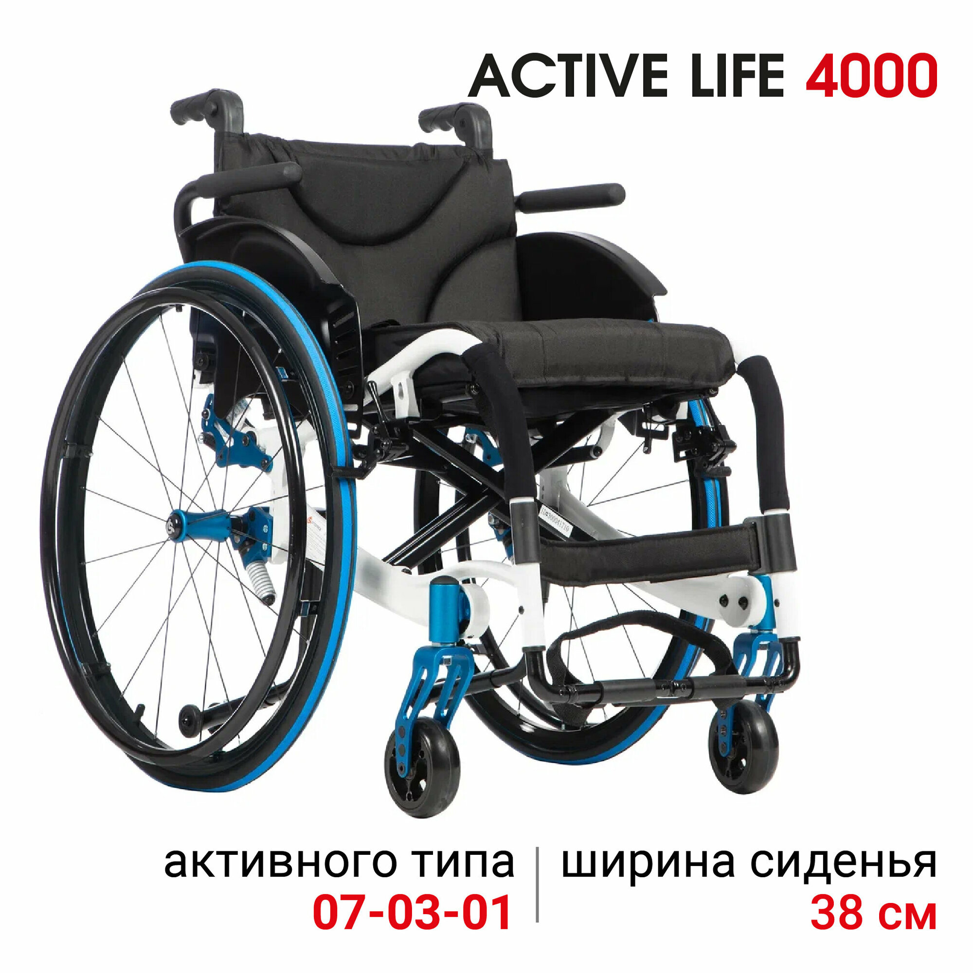 Активное кресло-коляска для инвалидов Ortonica S 4000/Active Life 4000 38PU RR складное легкое ширина сиденья 38 см литые/пневматические шины RightRun Код 07-03-01, 07-02-01