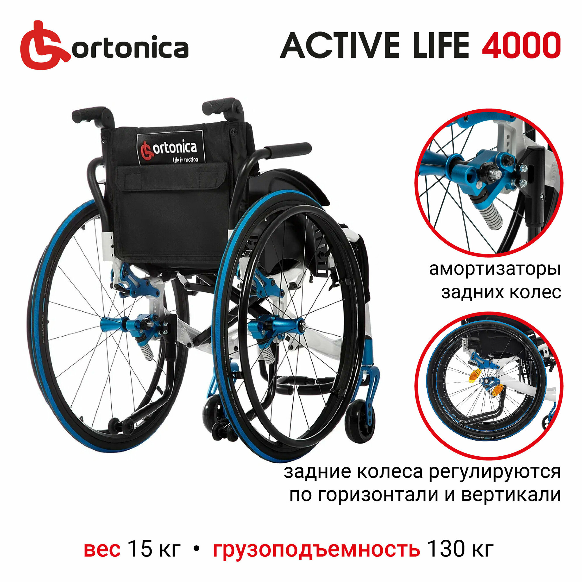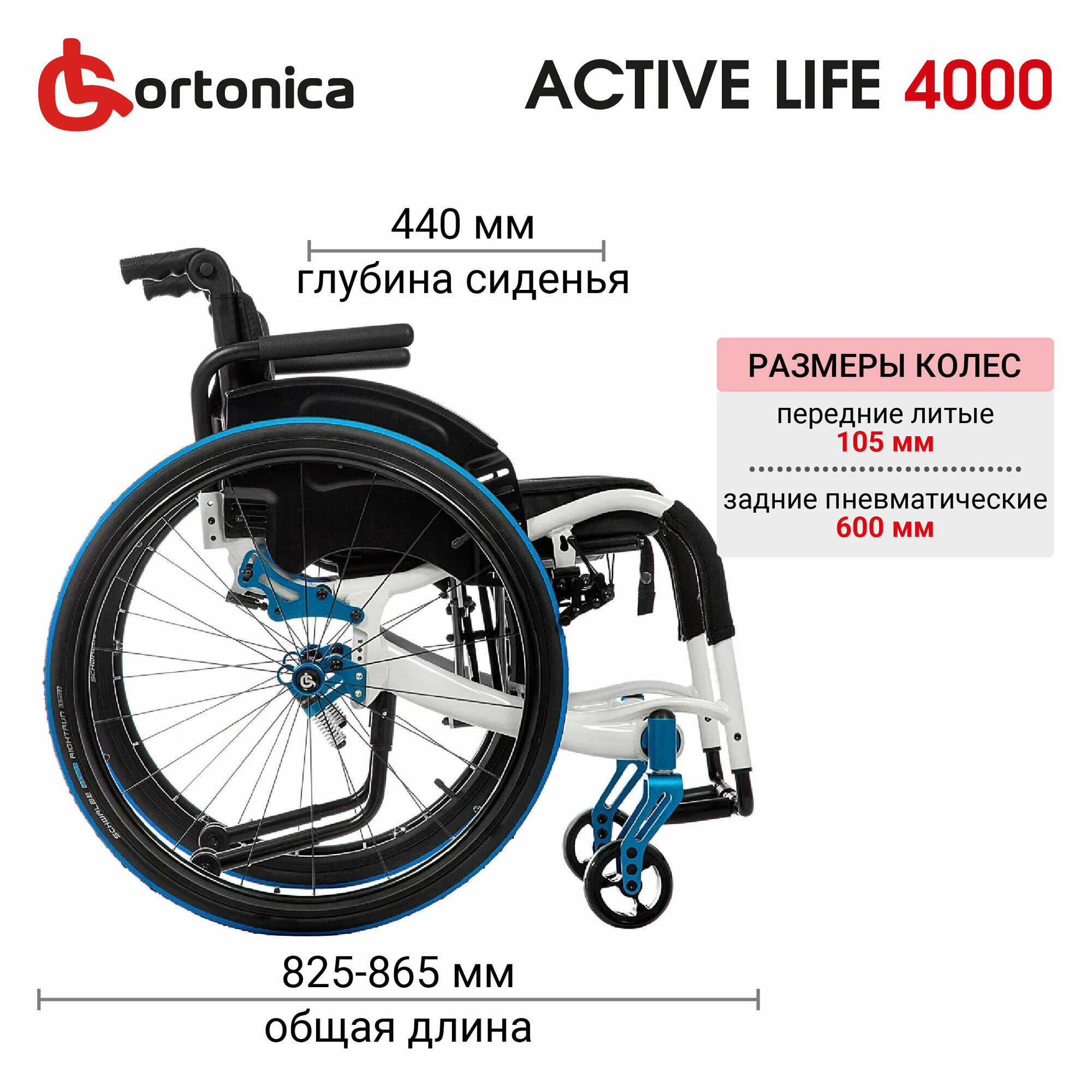 Кресло-коляска для инвалидов Ortonica Active Life 7000, ширина сиденья 43 см