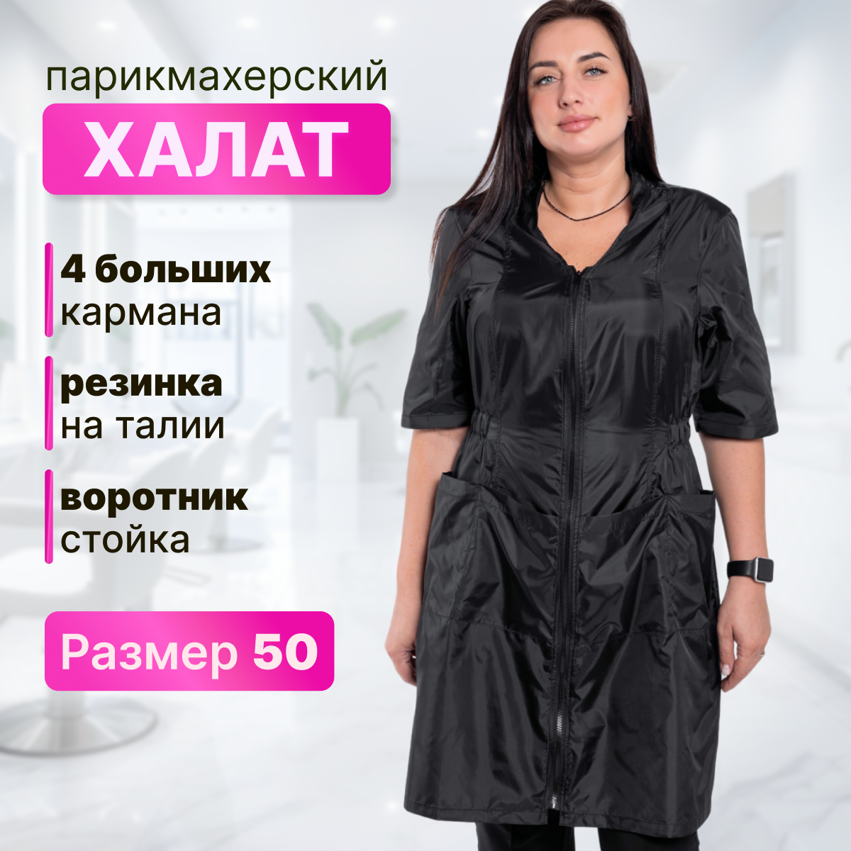 Купить CHARITES / Халат парикмахерский на молнии с карманами, универсальный чёрный, дышащий материал, для косметолога 50 размер(10466)