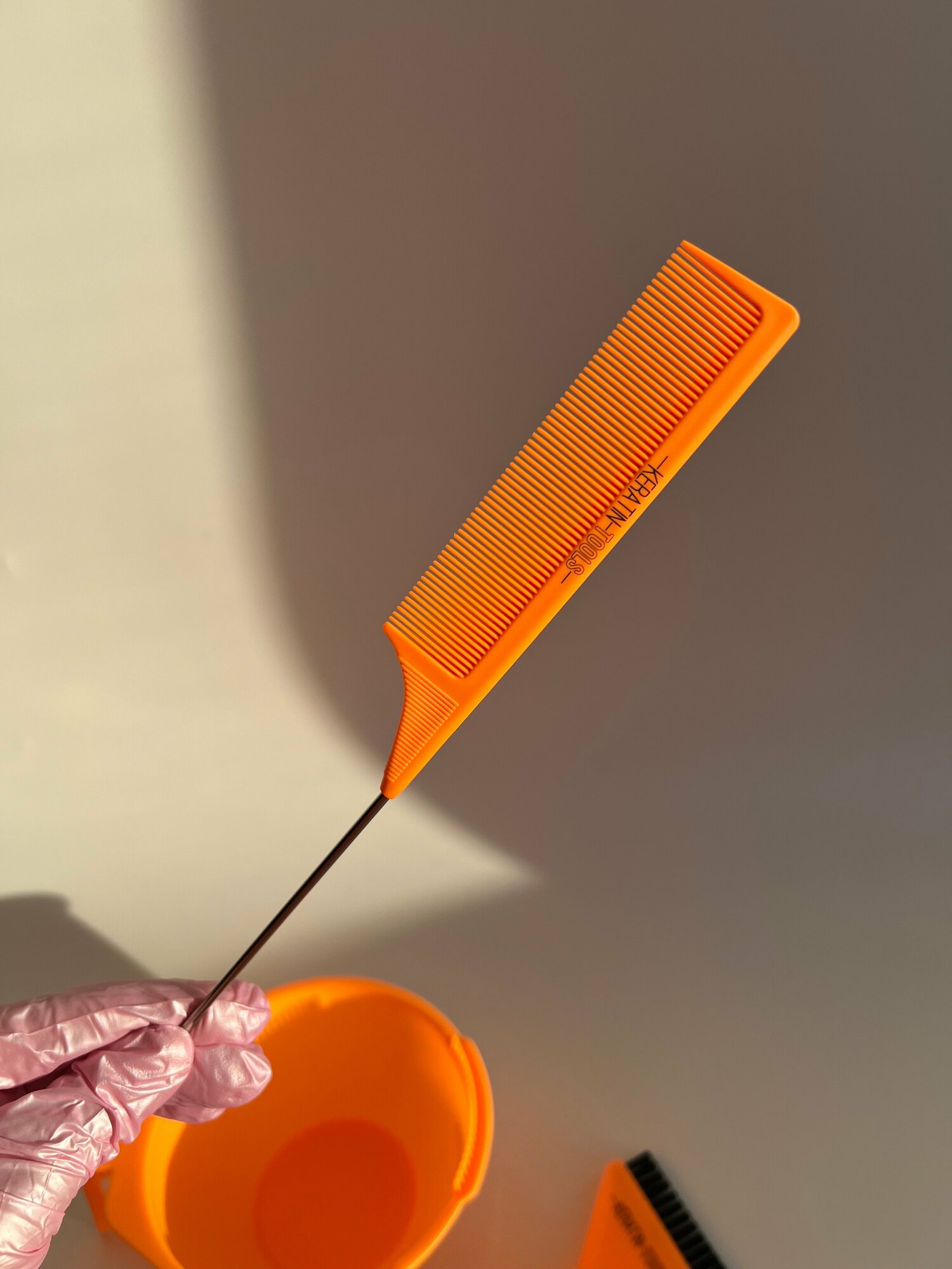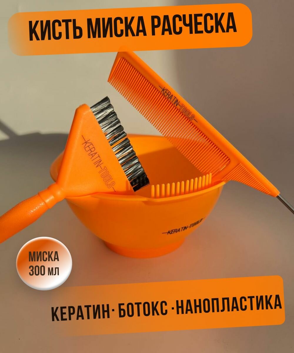 Купить Keratin Tools Кисть для нанесения кератина ботокса + миска для состава + расческа с металлическим хвостиком , набор для реконструкции волос оранжевый