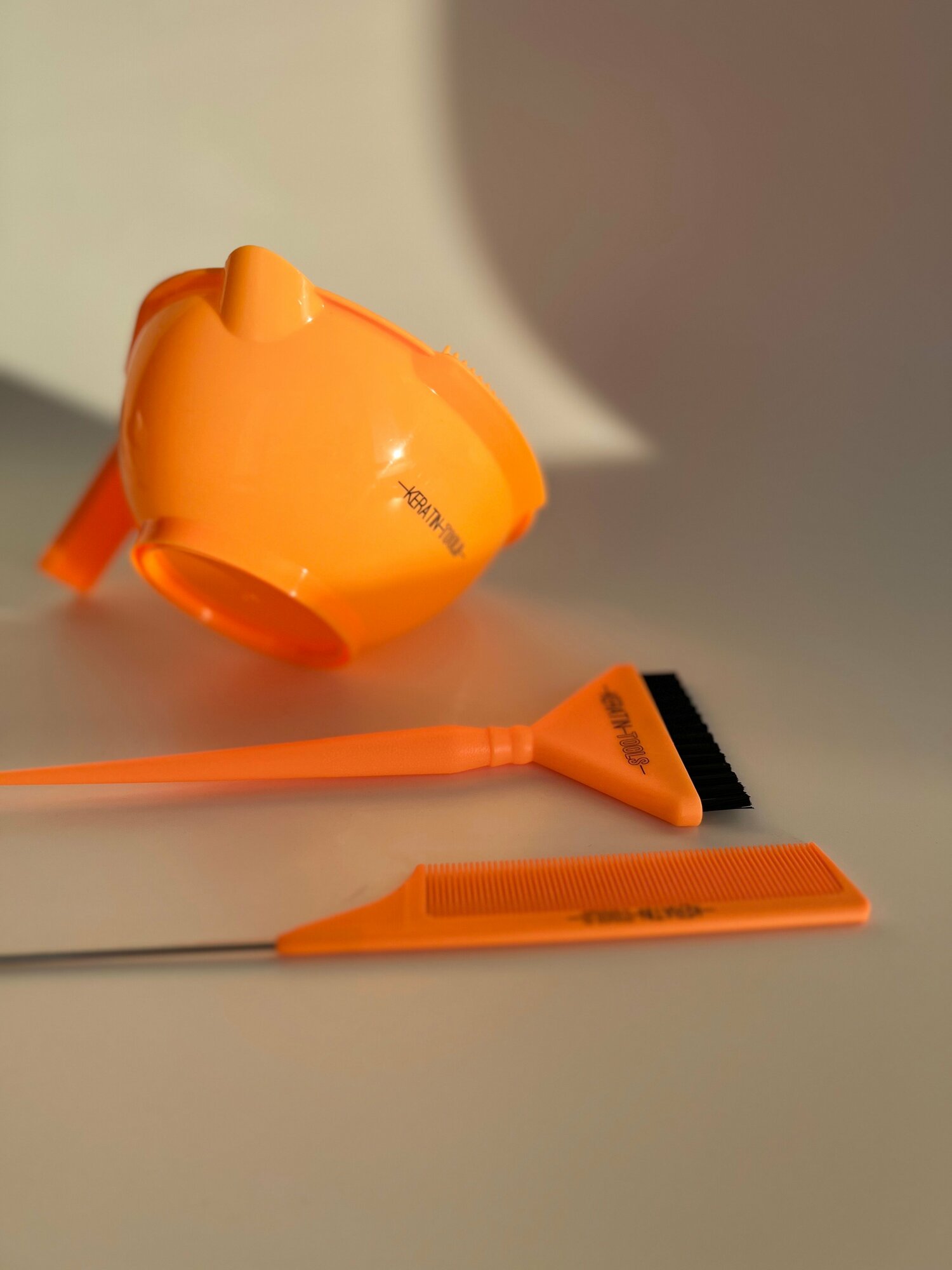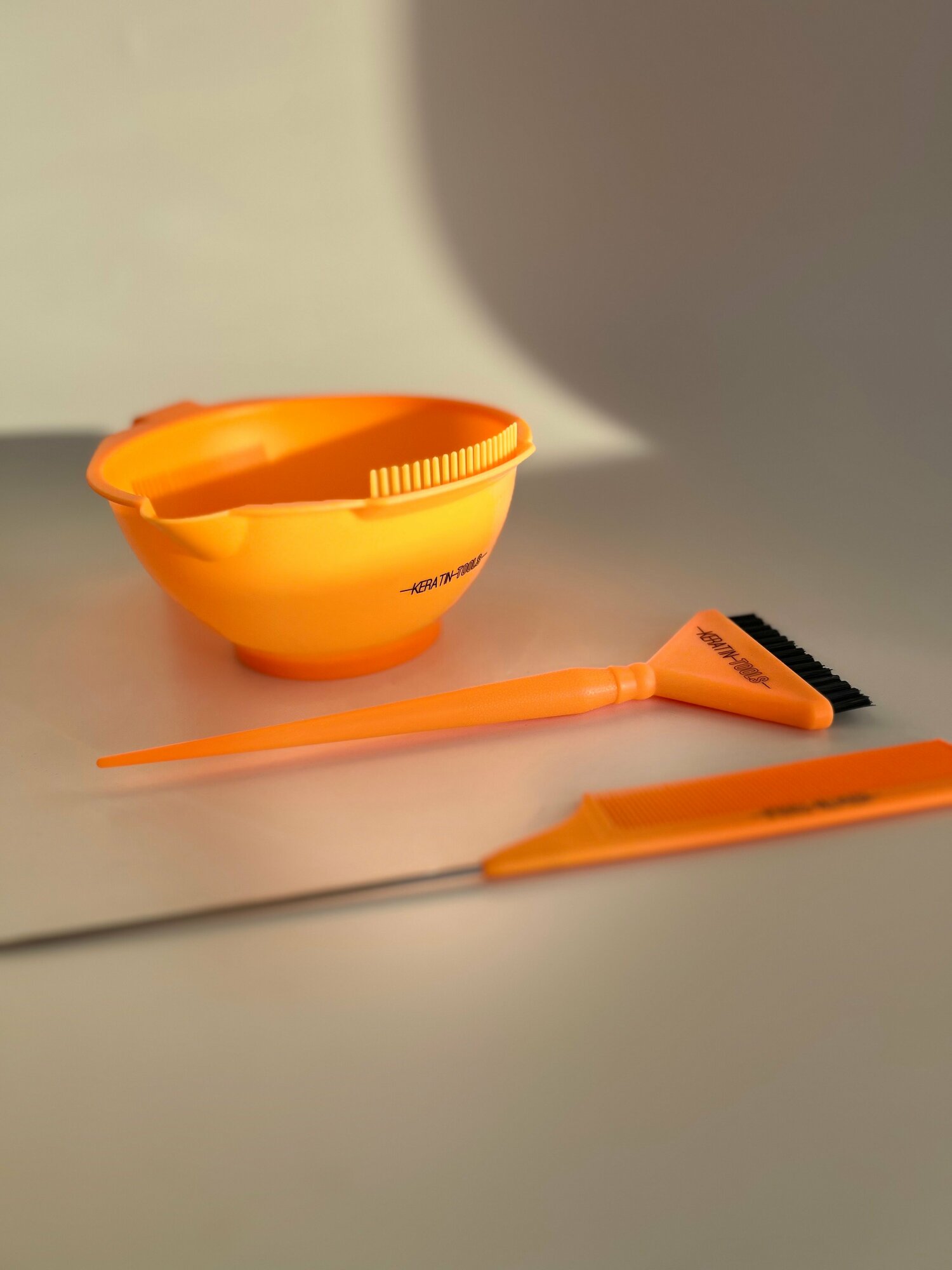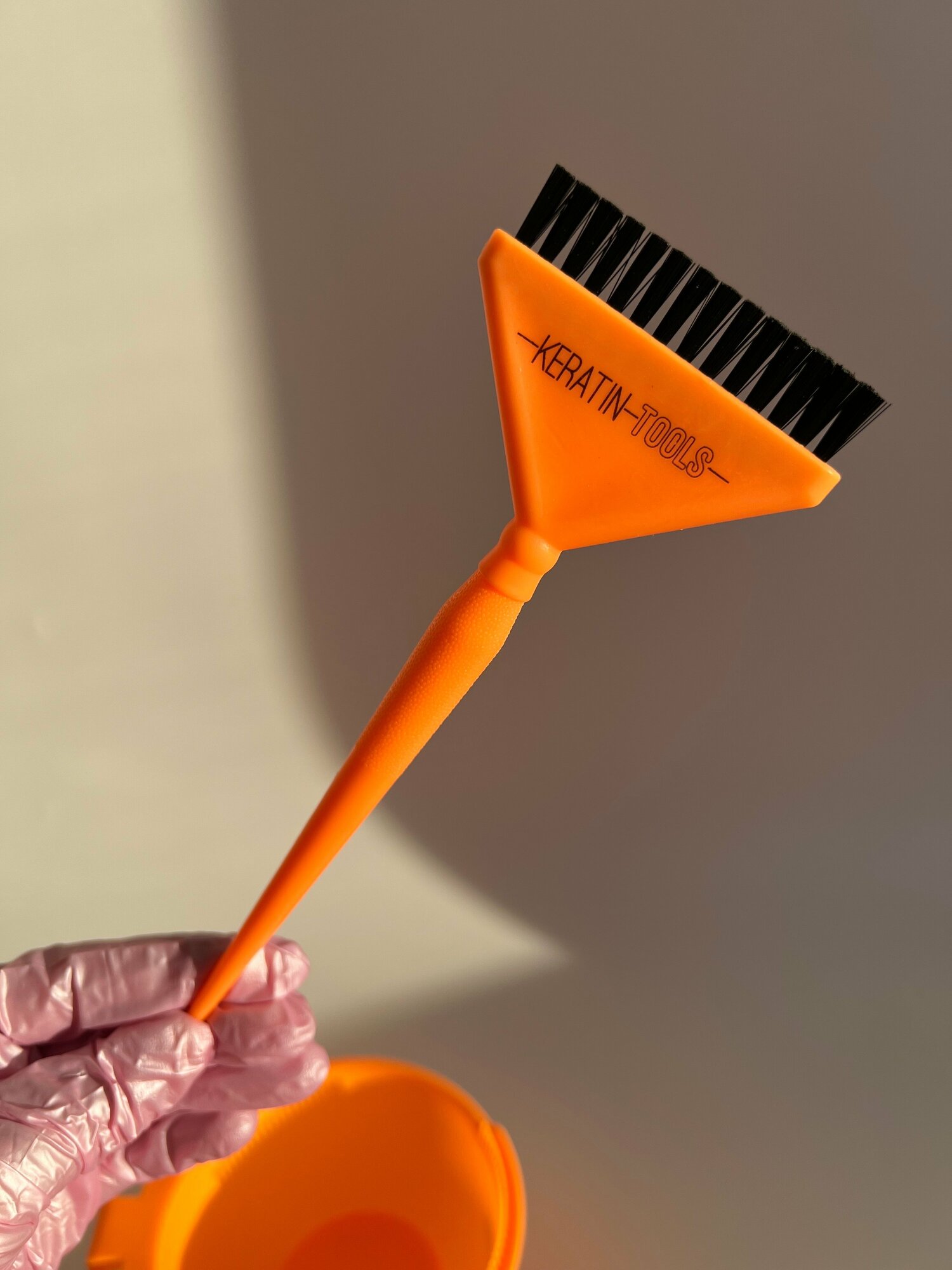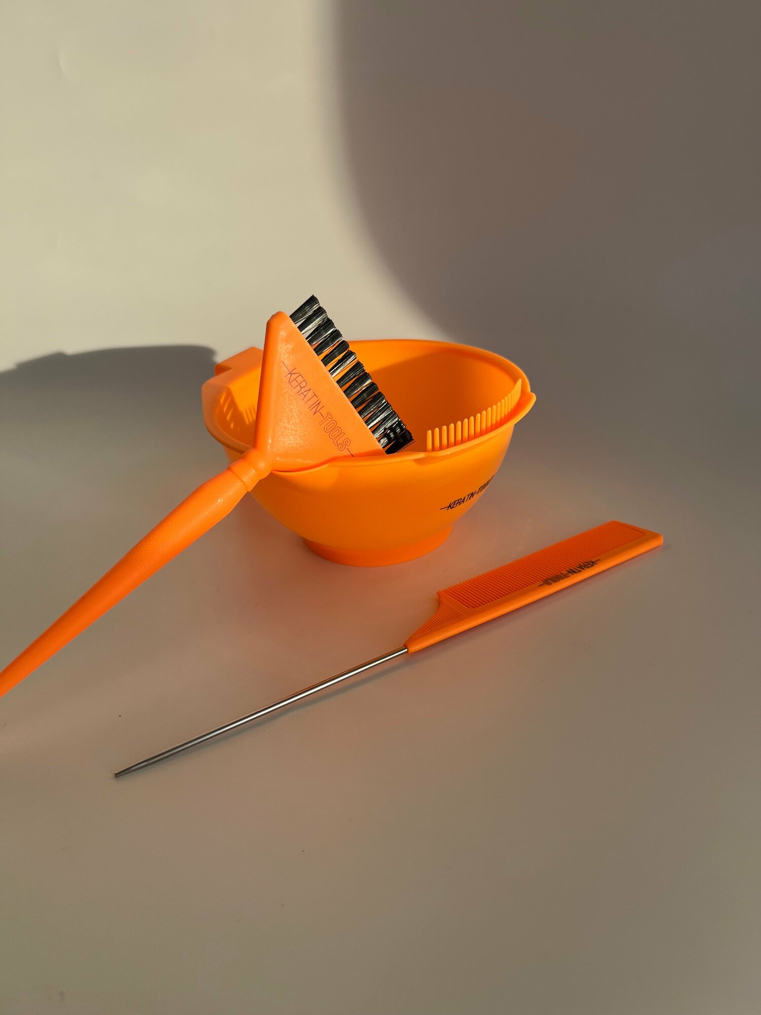 Keratin Tools Кисть для нанесения кератина ботокса + миска для состава + расческа с металлическим хвостиком , набор для реконструкции волос оранжевый интересное: