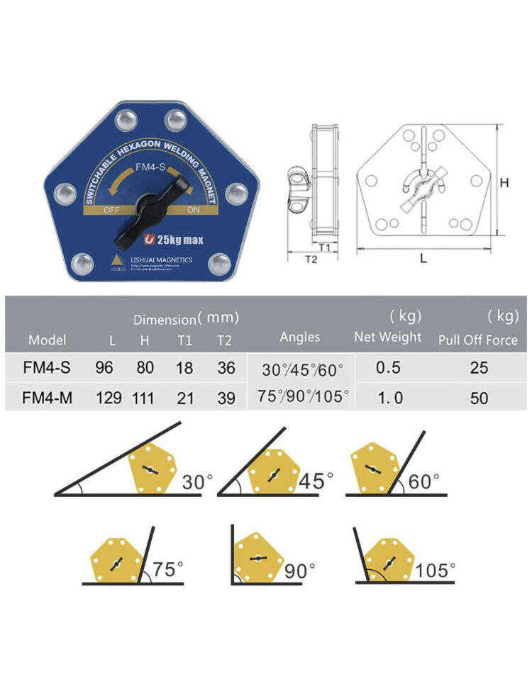 Магнитный держатель для сварки для 6-ти углов FM4-M, Переключаемый интересное: