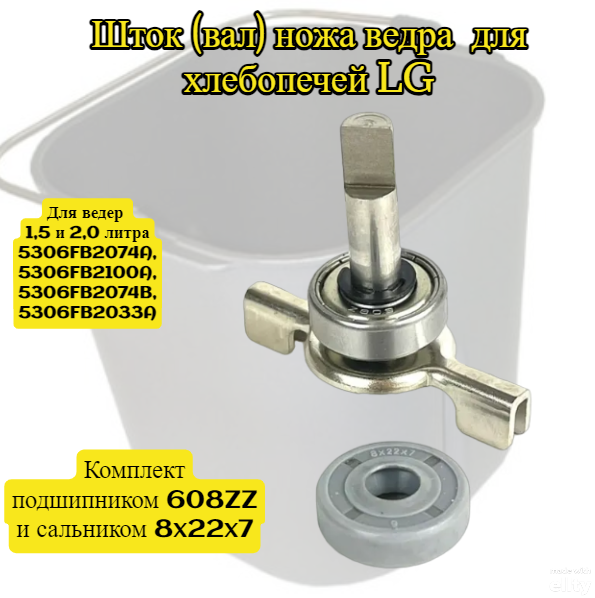 Шток (вал) ножа ведра для хлебопечей LG (Элджи) в сборе с подшипником 608ZZ и сальником 8x22x7, для ведер 1,5 и 2,0 литра. 5306FB2074A, 5306FB2100A интересное: