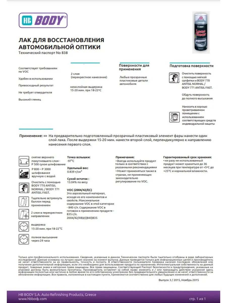 Лак Для Восстановления Фар (400 Мл) Спрей Body 5230000000 HB BODY арт. 5230000000 интересное: