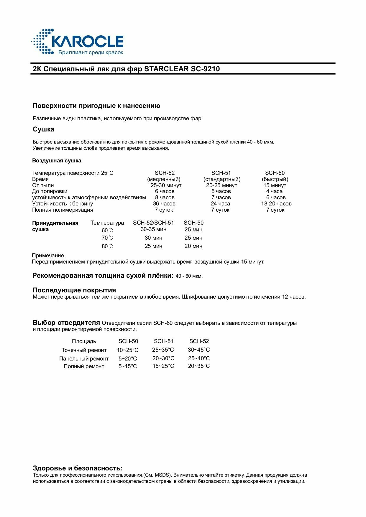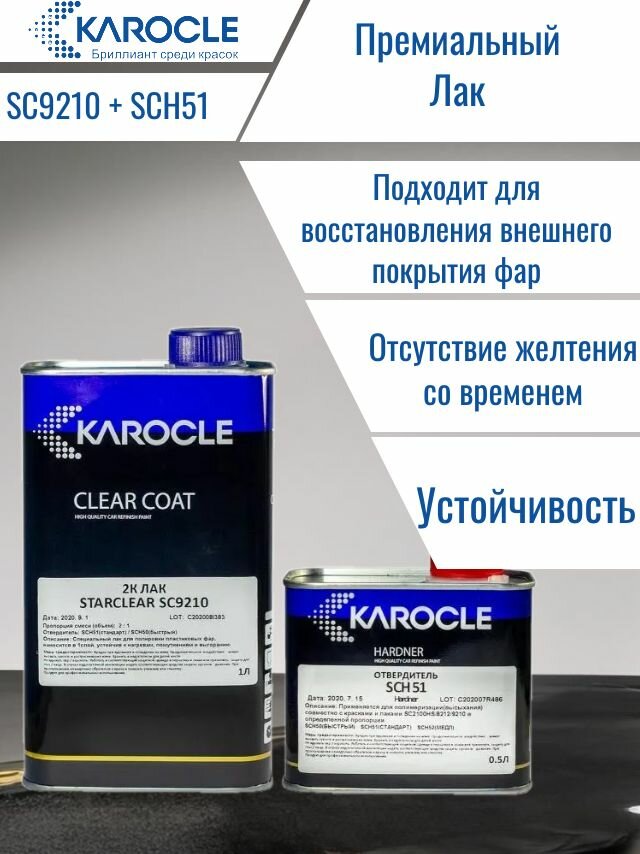 KAROCLE SC9210-1L Специальный лак для покраски пластиковых фар, 1 слойный, +SCH51-0.5л интересное: