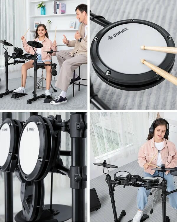 | Подробная комплектация | Электронная ударная установка Donner Ded-80, стул, наушники и палочки |