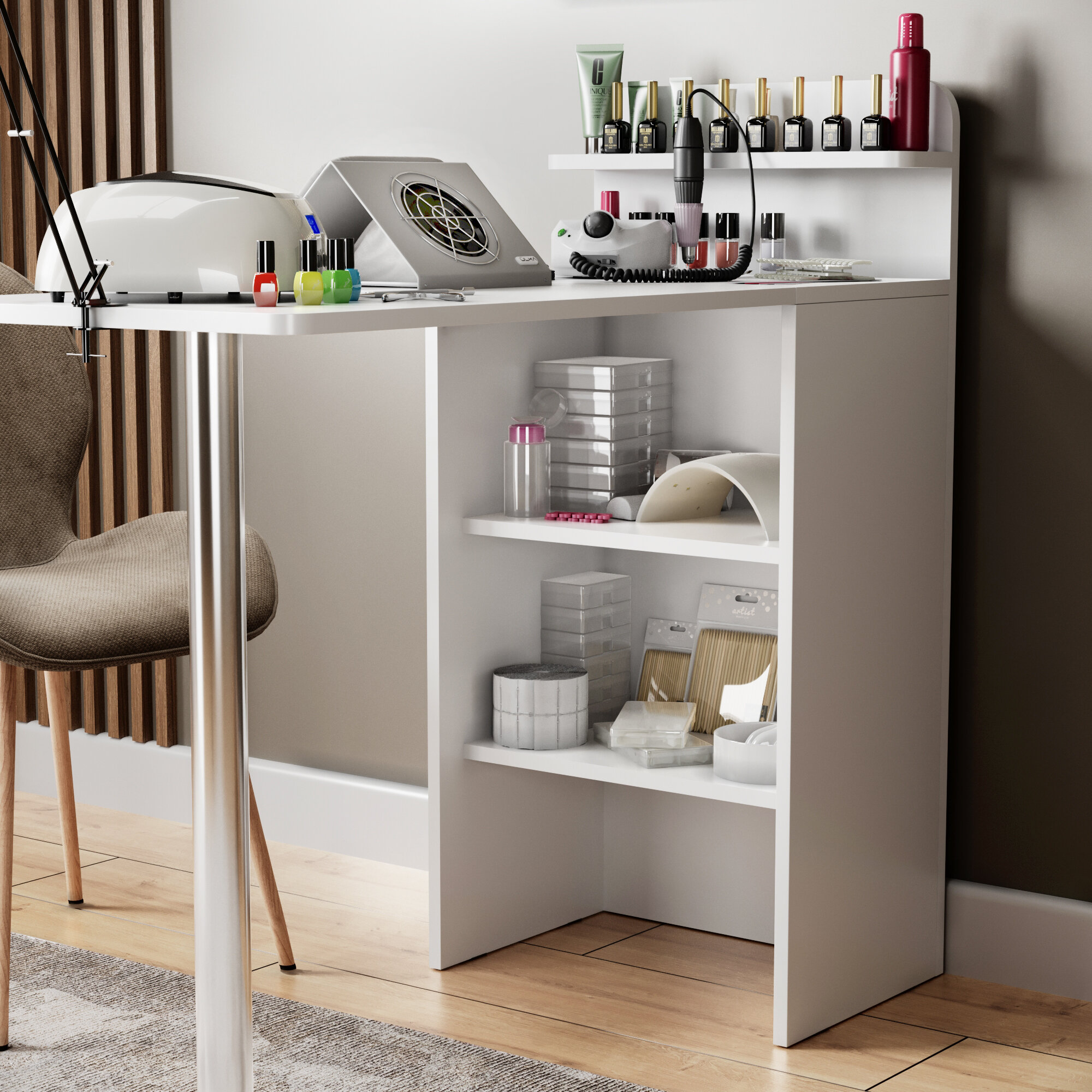 Стол для маникюра складной с полками белый интересное: