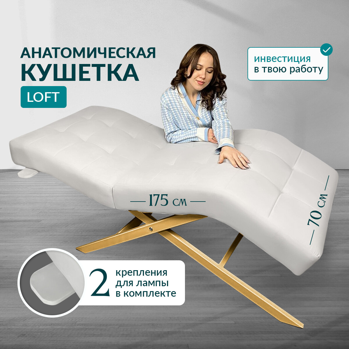 Купить Анатомическая кушетка в стиле Лофт, в салон красоты, в студию, для наращивания ресниц, для преманентного макияжа, кожа Цвет Белый на золотых ножках