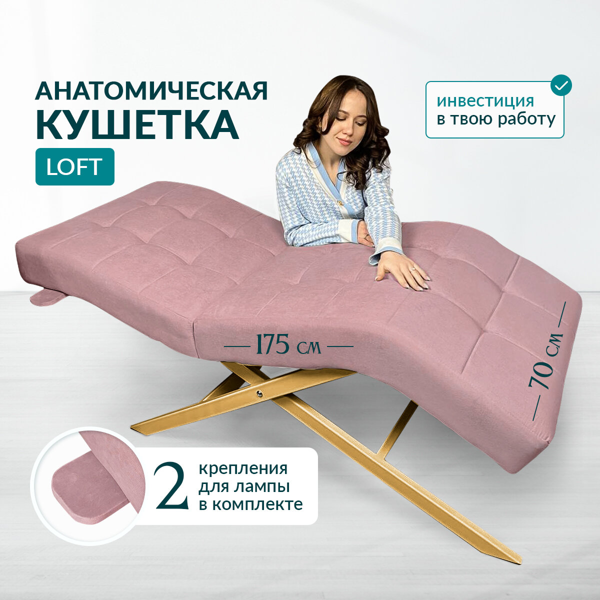 Купить Анатомическая кушетка в стиле Лофт, в салон красоты, золотая ножка, в студию, для наращивания ресниц, для преманентного макияжа, Велюр Цвет пудровый