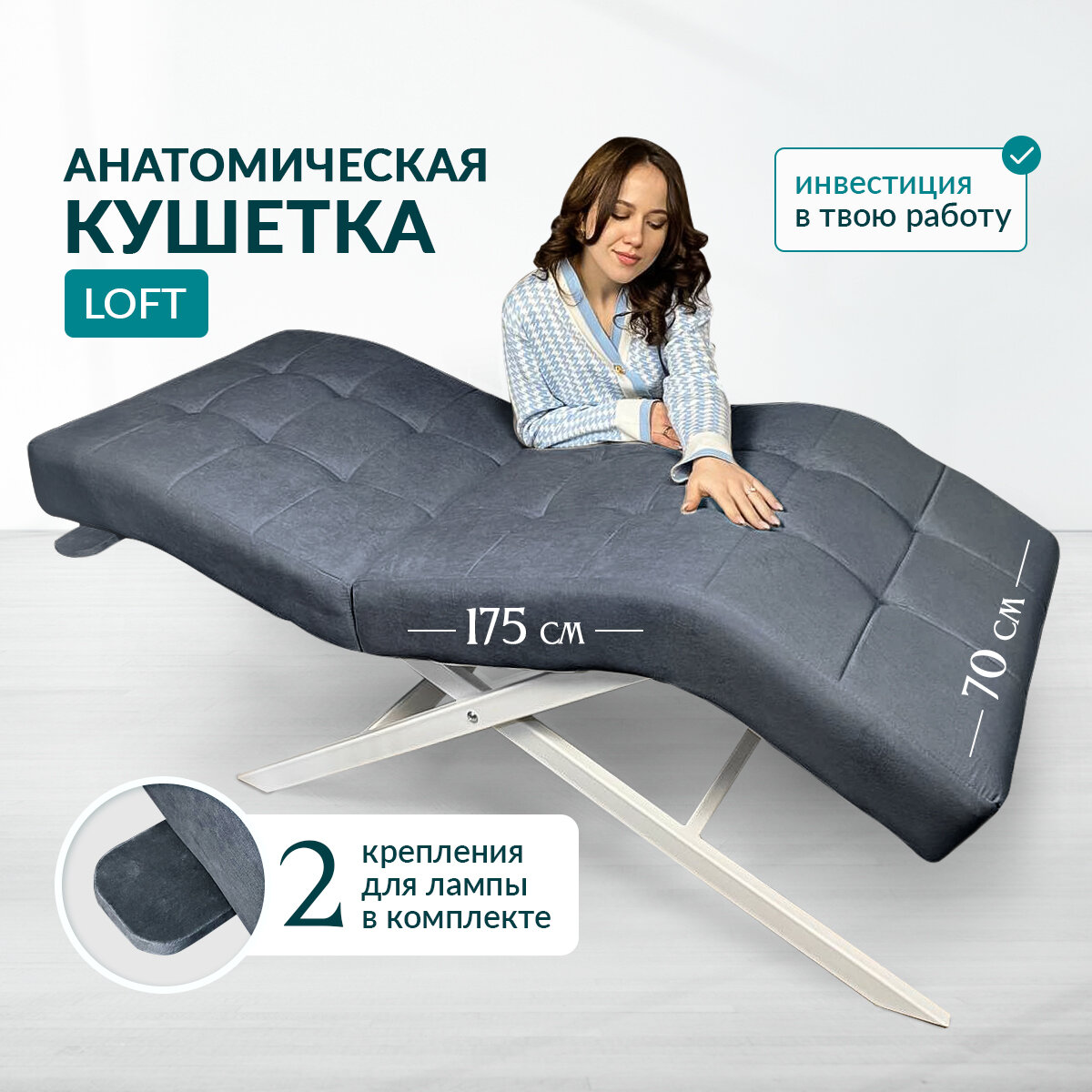 СохранитьАнатомическая кушетка в стиле Лофт, в салон красоты, в студию, для наращивания ресниц, для преманентного макияжа, Велюр Цвет Серый интересное:
