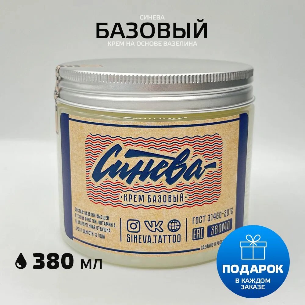 Крем "Синева" на основе вазелина для татуировки и татуажа "Базовый", 380 мл