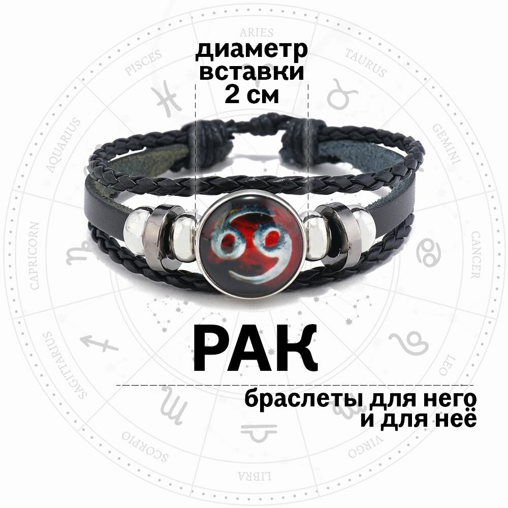 Купить Браслет кожаный Croco Gifts знак зодиака "Рак" с регулировкой размера