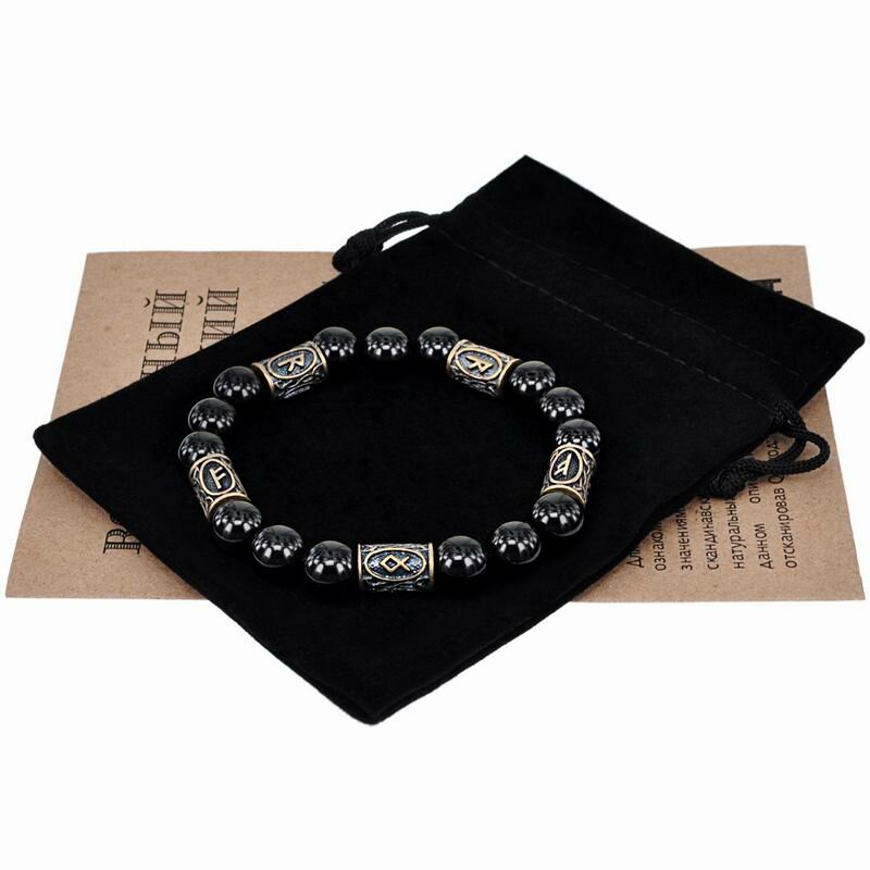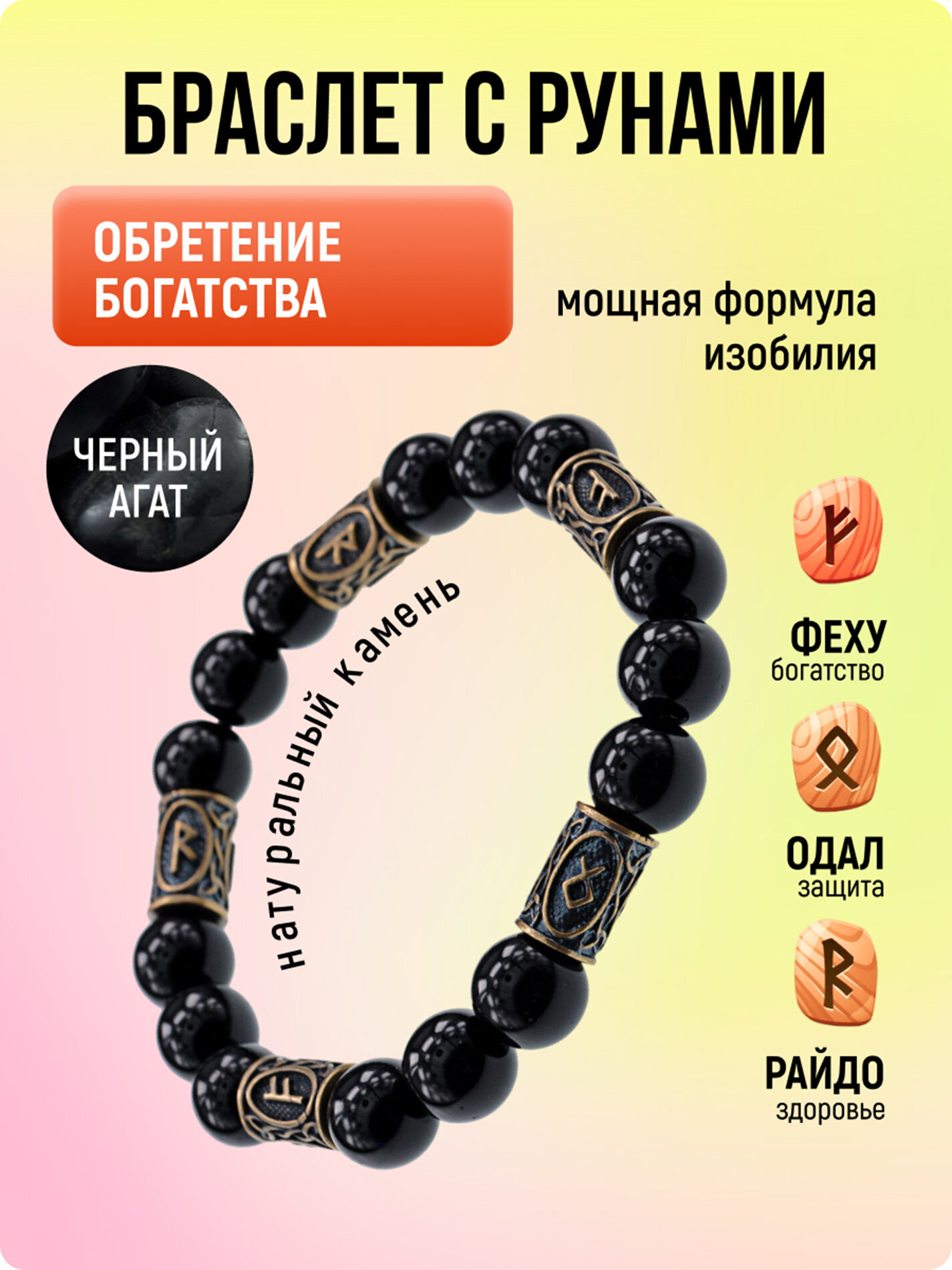 Купить Рунический браслет Формула для обретения богатства, Чёрный агат