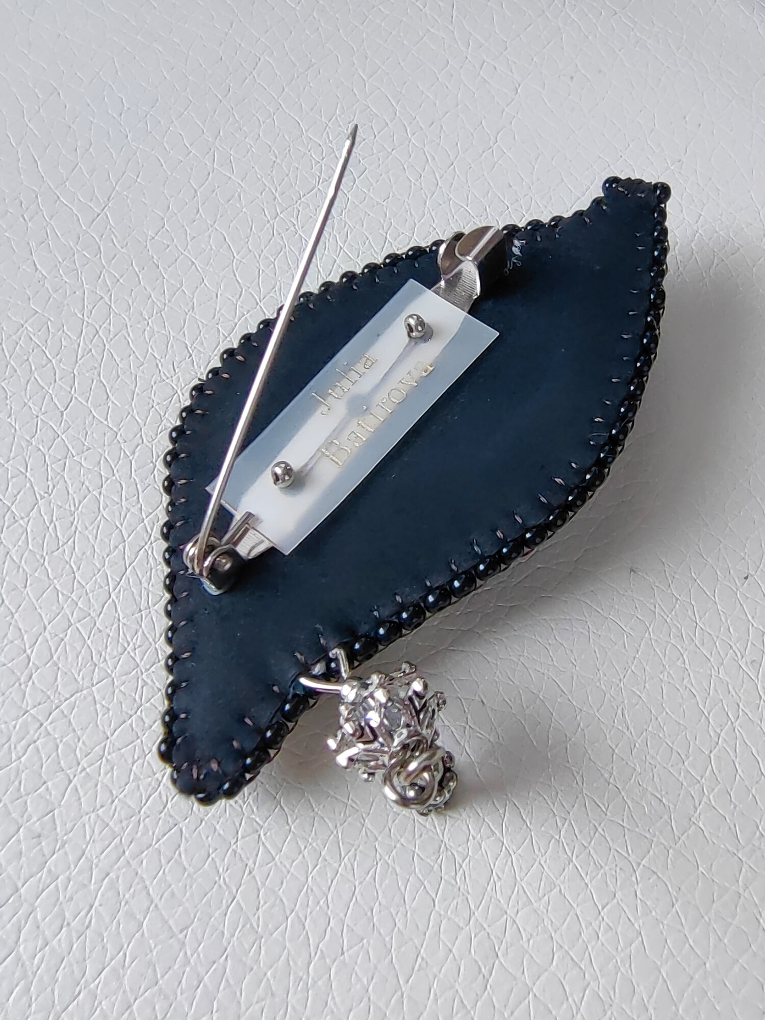 Брошь Julia Batirova, кристалл, бисер, стразы, стекло, синий