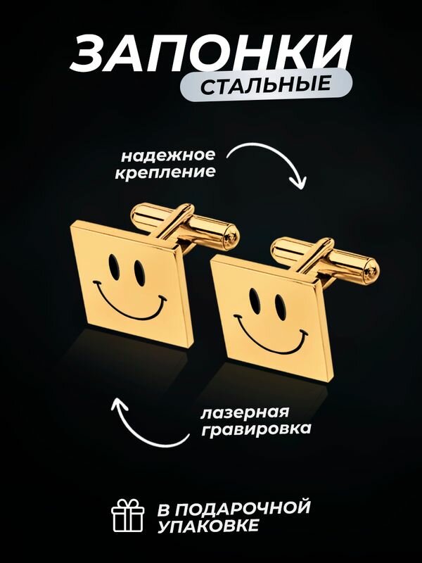 СохранитьЗапонки, с гравировкой, мужские, Смайлик интересное: