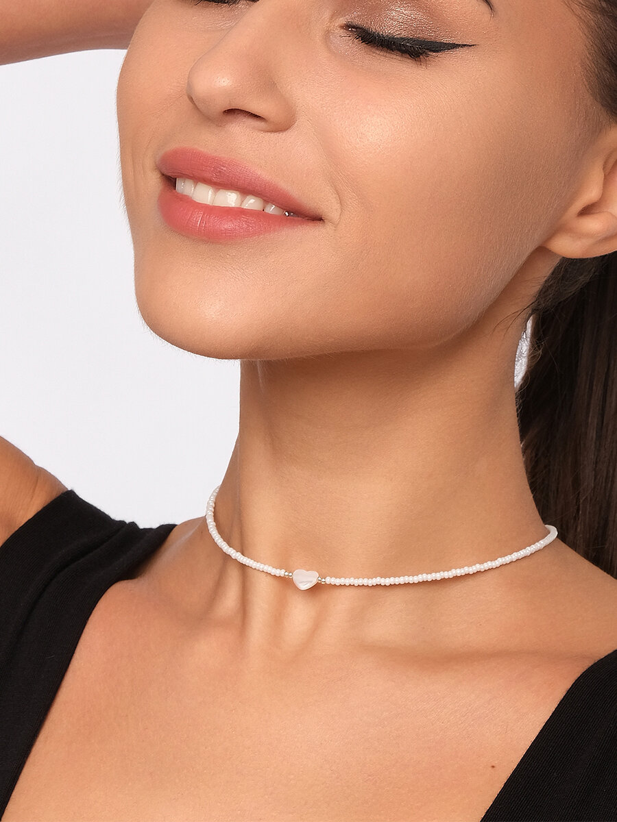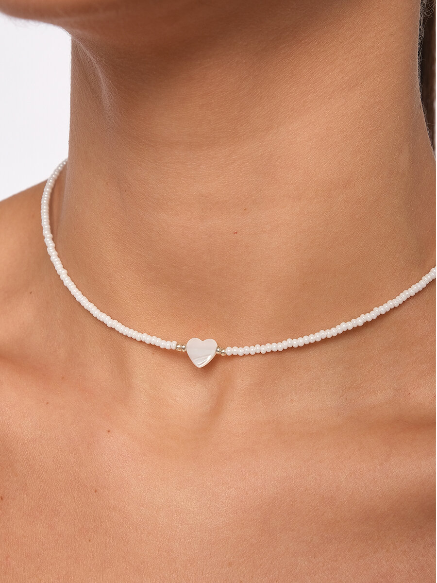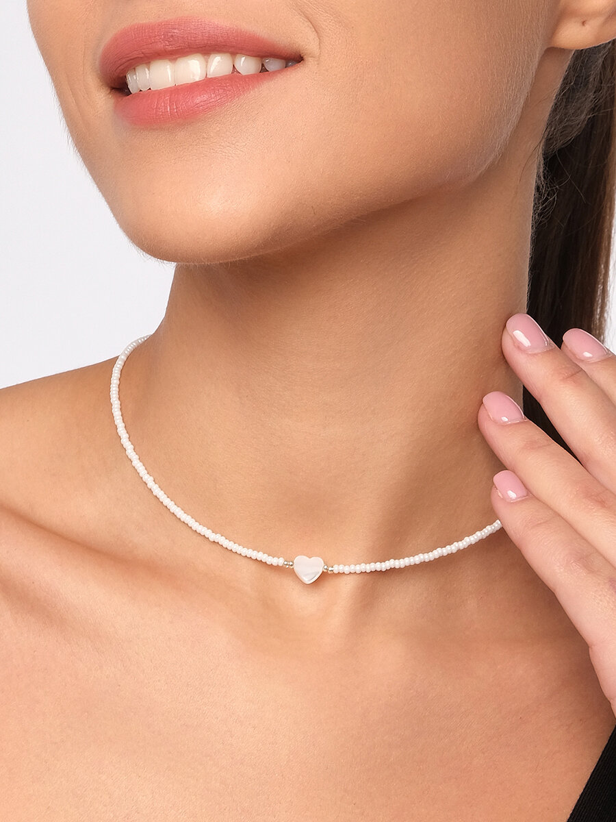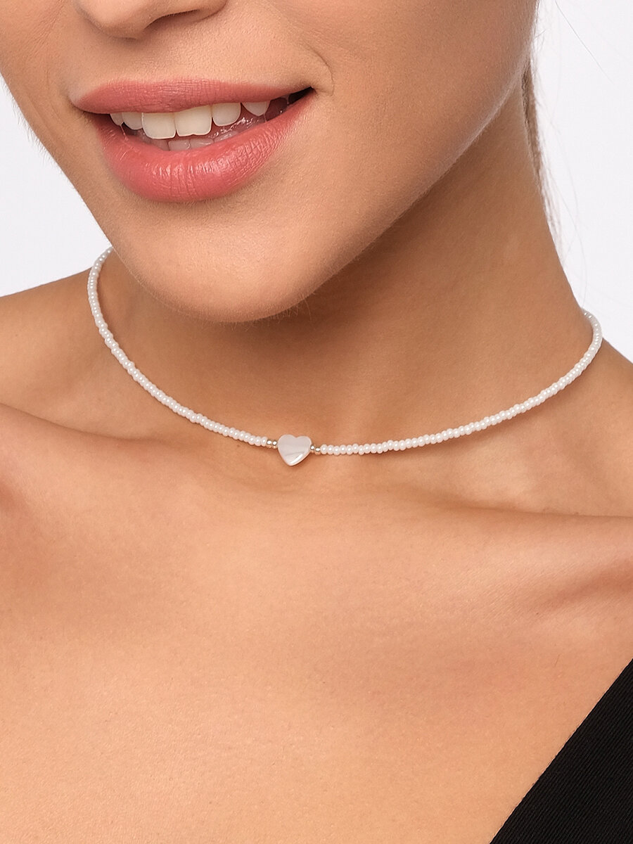 Чокер из белого жемчужного бисера с сердечком из перламутра
