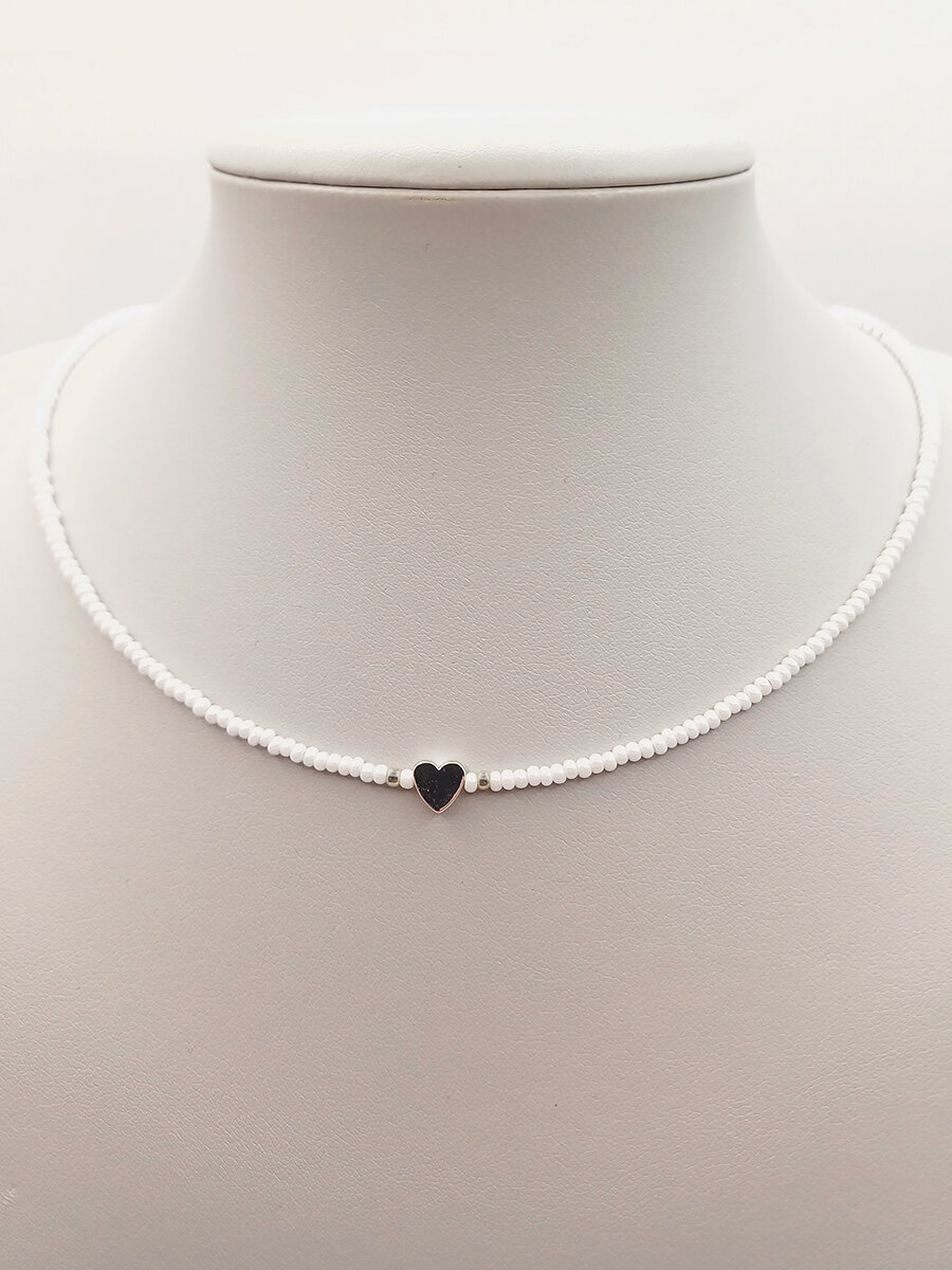 Чокер из бисера с сердечком серебряные вставки 35 см