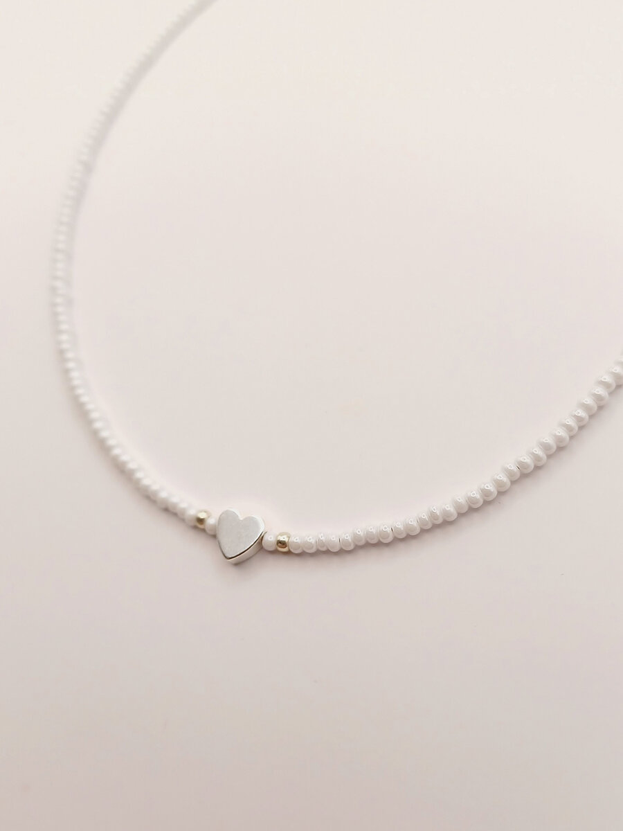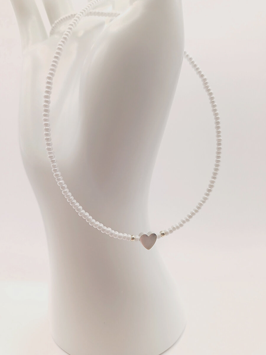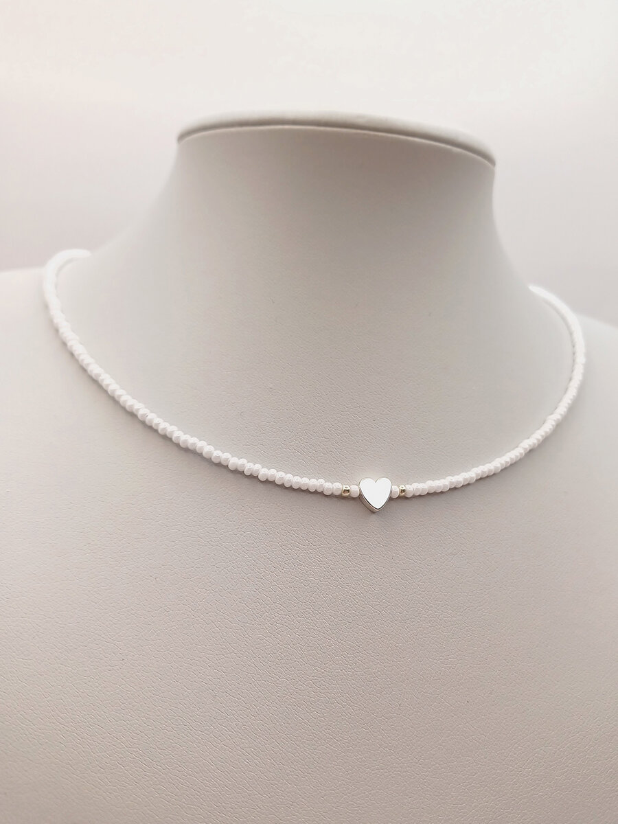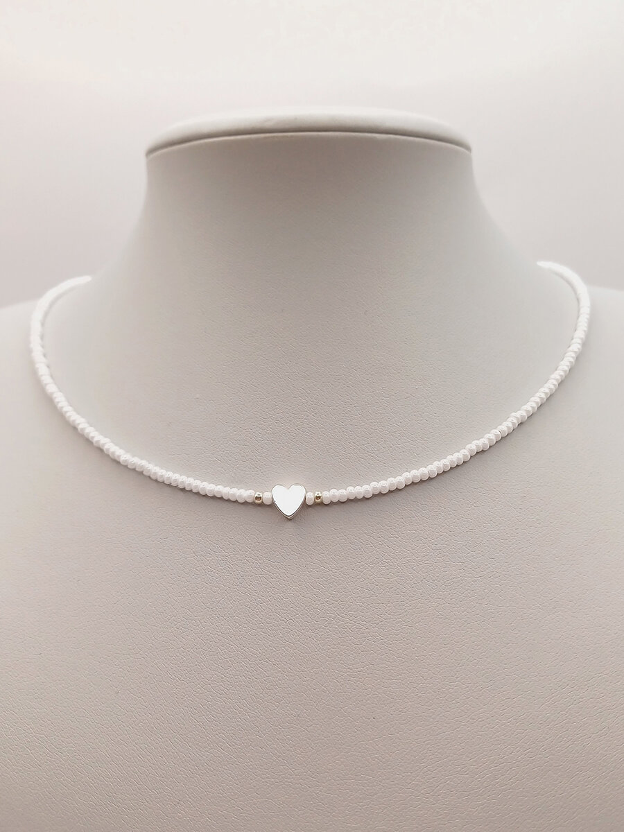 Чокер из белого жемчужного бисера с сердечком из перламутра