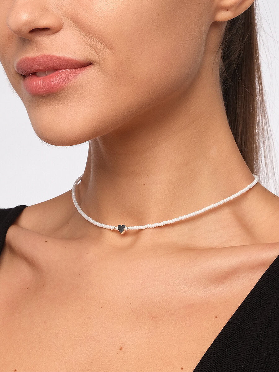 Чокер из жемчужного бисера с золотым сердечком