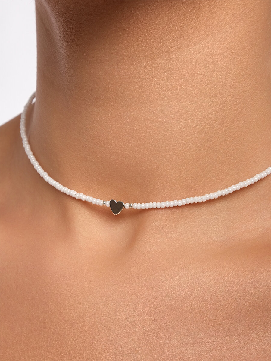 Чокер из жемчужного бисера с серебряным сердечком 35 см интересное: