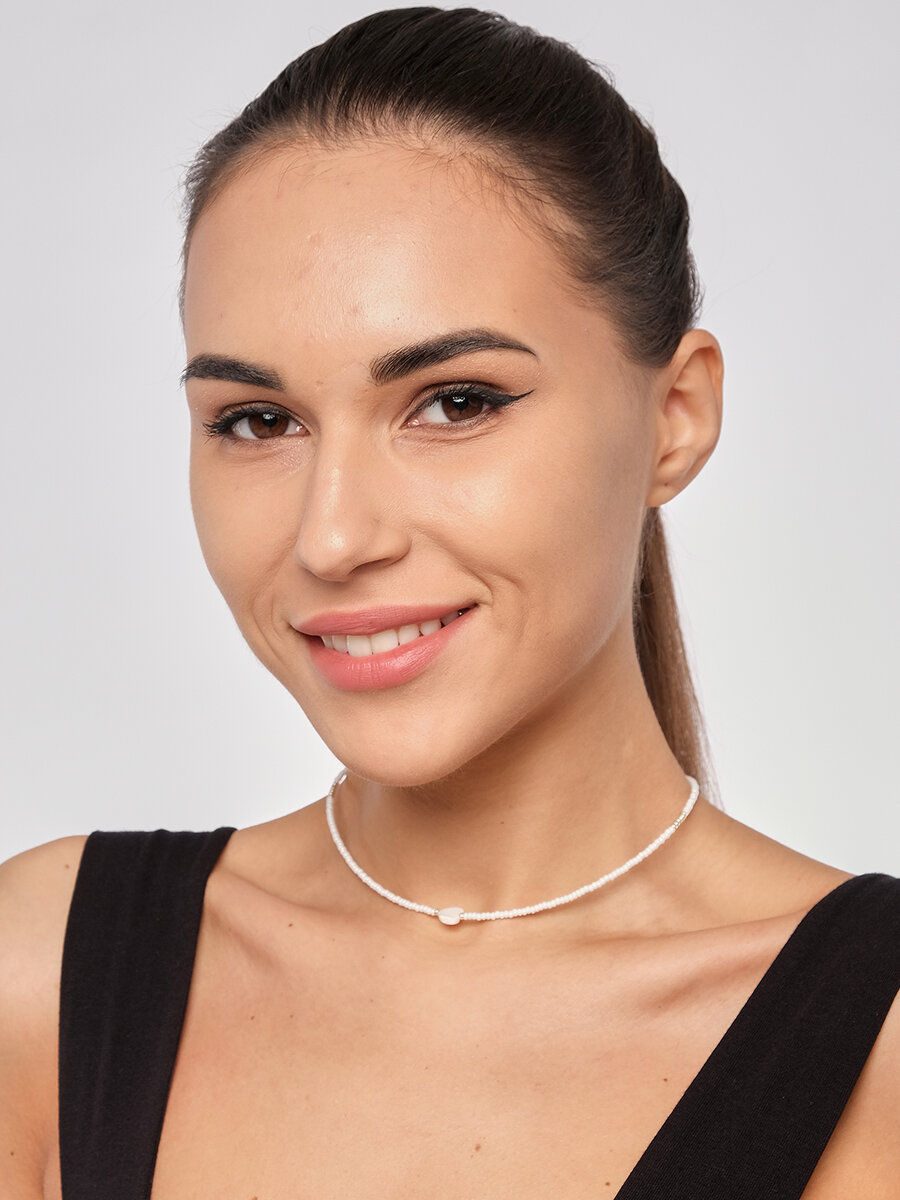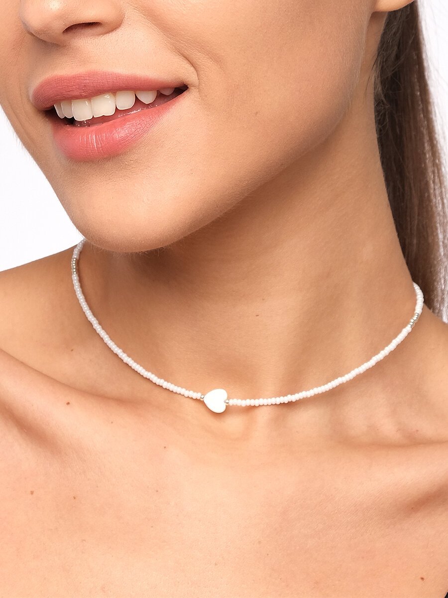 Купить Чокер из белого жемчужного бисера с сердечком из перламутра