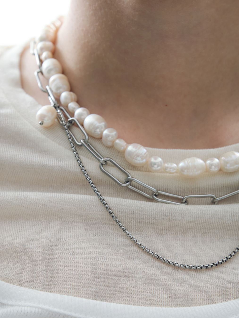 Купить Колье ресурс из жемчуга разного диаметра и цепей