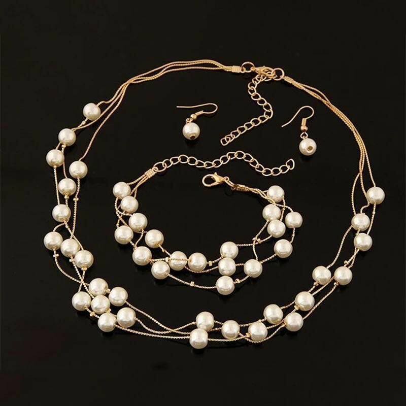 Купить Комплект украшений, бижутерия женская на шею, ожерелье на шею, серьги и колье, жемчужное ожерелье, серьги, браслет с жемчугом бижутерия, свадебные украшения для женщин, все для свадьбы, бижутерия вечерняя набор, качественная бижутерия.