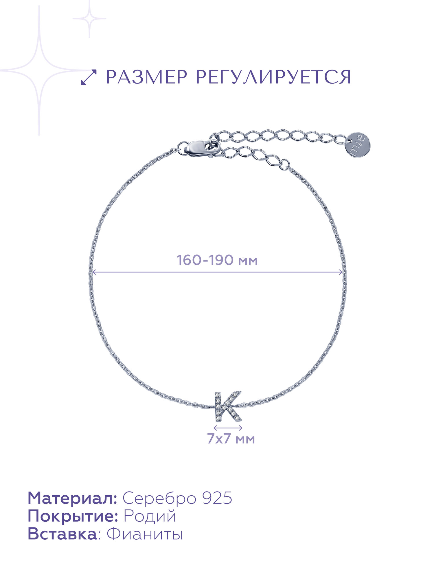 Браслет MIESTILO браслет женский браслет женский серебро браслет серебро с камнями буква E
