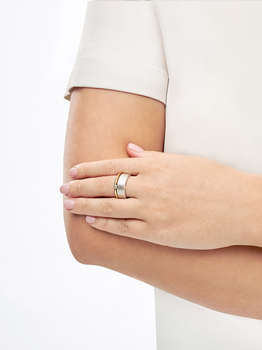 | Название модели | Двойное широкое серебряное кольцо с позолотой |