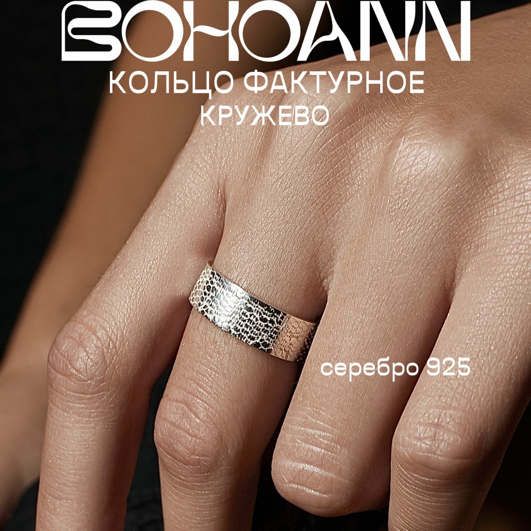 Кольцо широкое кружево серебряное 925 BOHOANN интересное: