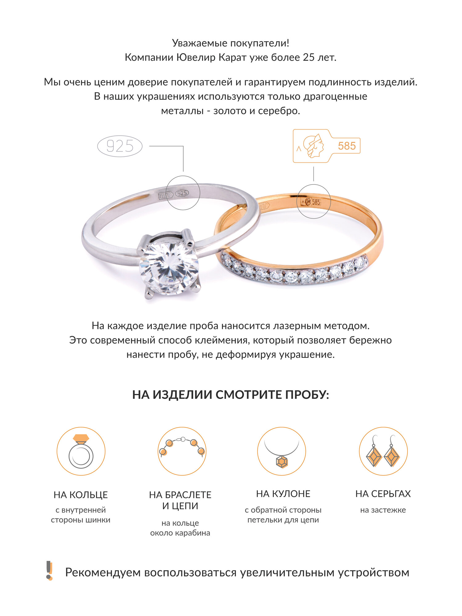 | Комплектация | ювелирное изделие с биркой и пломбой-1 шт.; подарочная упаковка-1шт. |