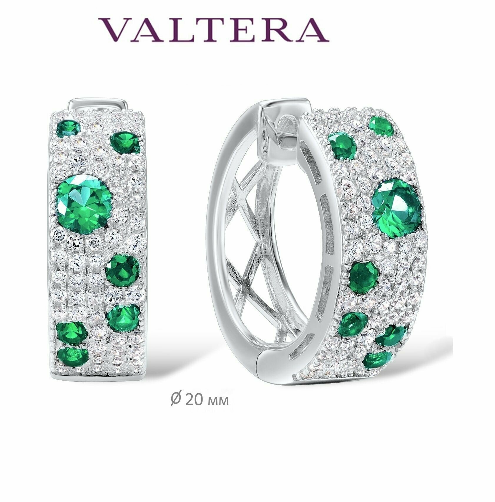 Серьги VALTERA, серебро, 925 проба, фианит, размер 20 мм, длина 2 см, , зелeный