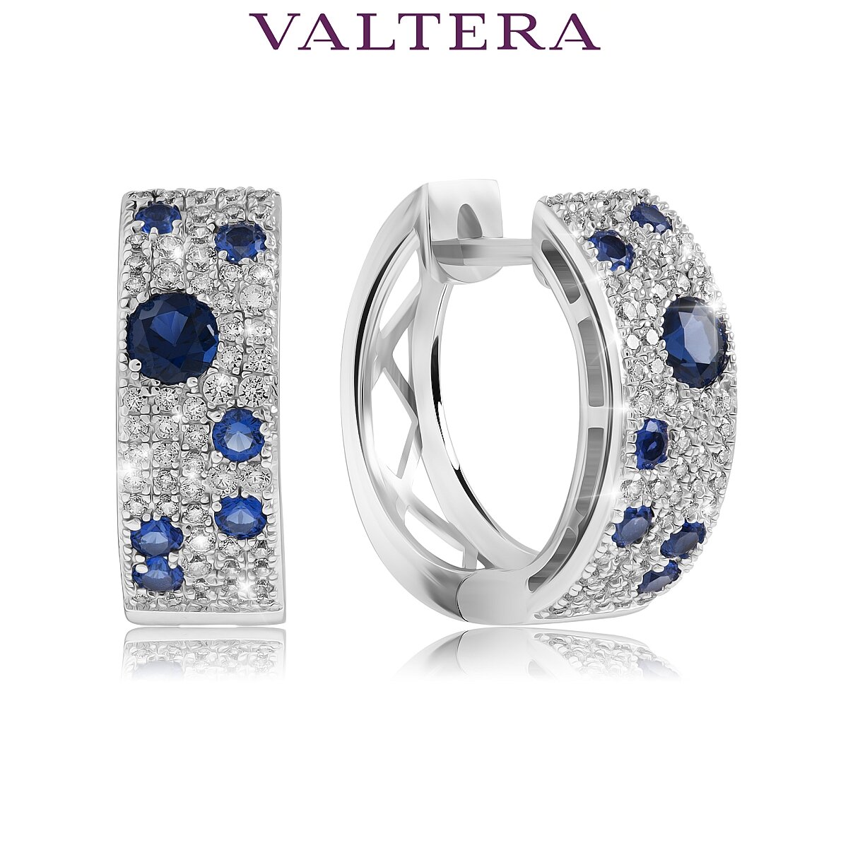 Купить VALTERA Серьги конго, кольца, серьги серебро 925 пробы, нано сапфир и кубический цирконий, 091518