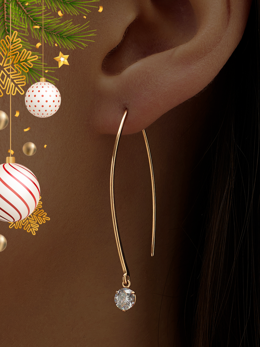 Серьги длинные висячие протяжки с фианитами, продевки с камнями, минимализм, ср.вес изделия 1,73 гр, арт. 2128871/91